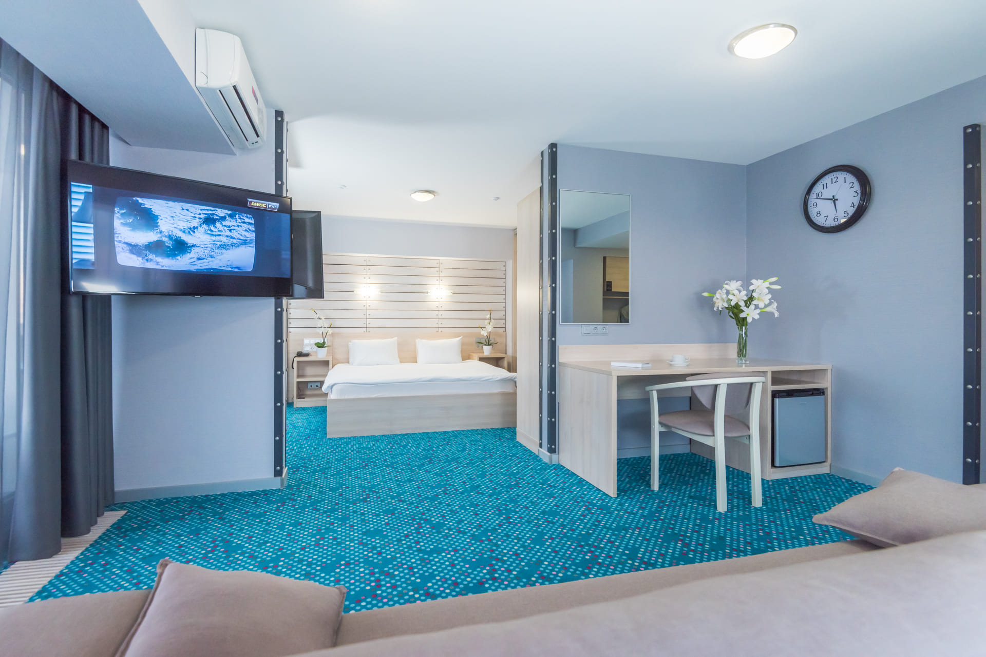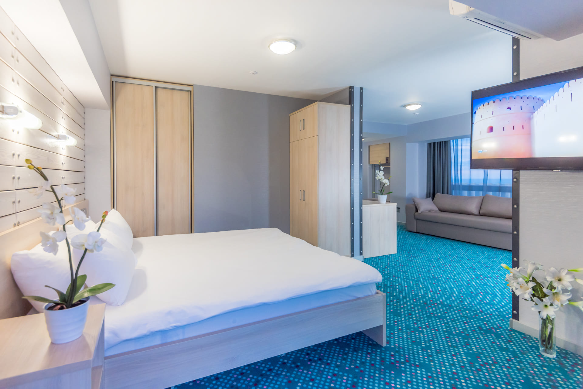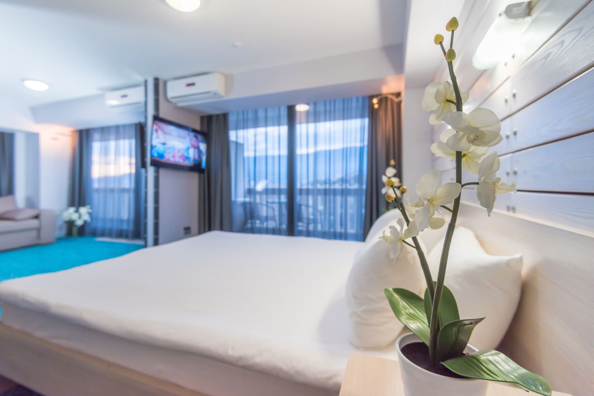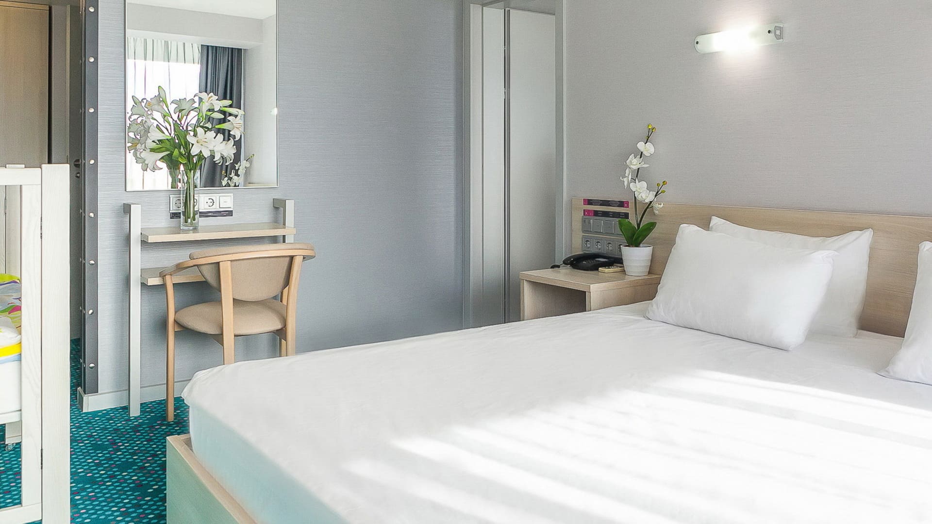 Во всех номерах гостиничного комплекса «Ялта-Интурист» есть балкон. В числе удобств — кондиционер, холодильник, а также телевизор с плоским экраном и кабельными каналами. Во всех помещениях подключен бесплатный Wi-Fi. Завтрак «шведский стол» сервируют ежедневно. Номера расположены в основном здании, а также в корпусах на территории отеля «Ялта-Интурист Green Park», выполненных в эко-стиле.