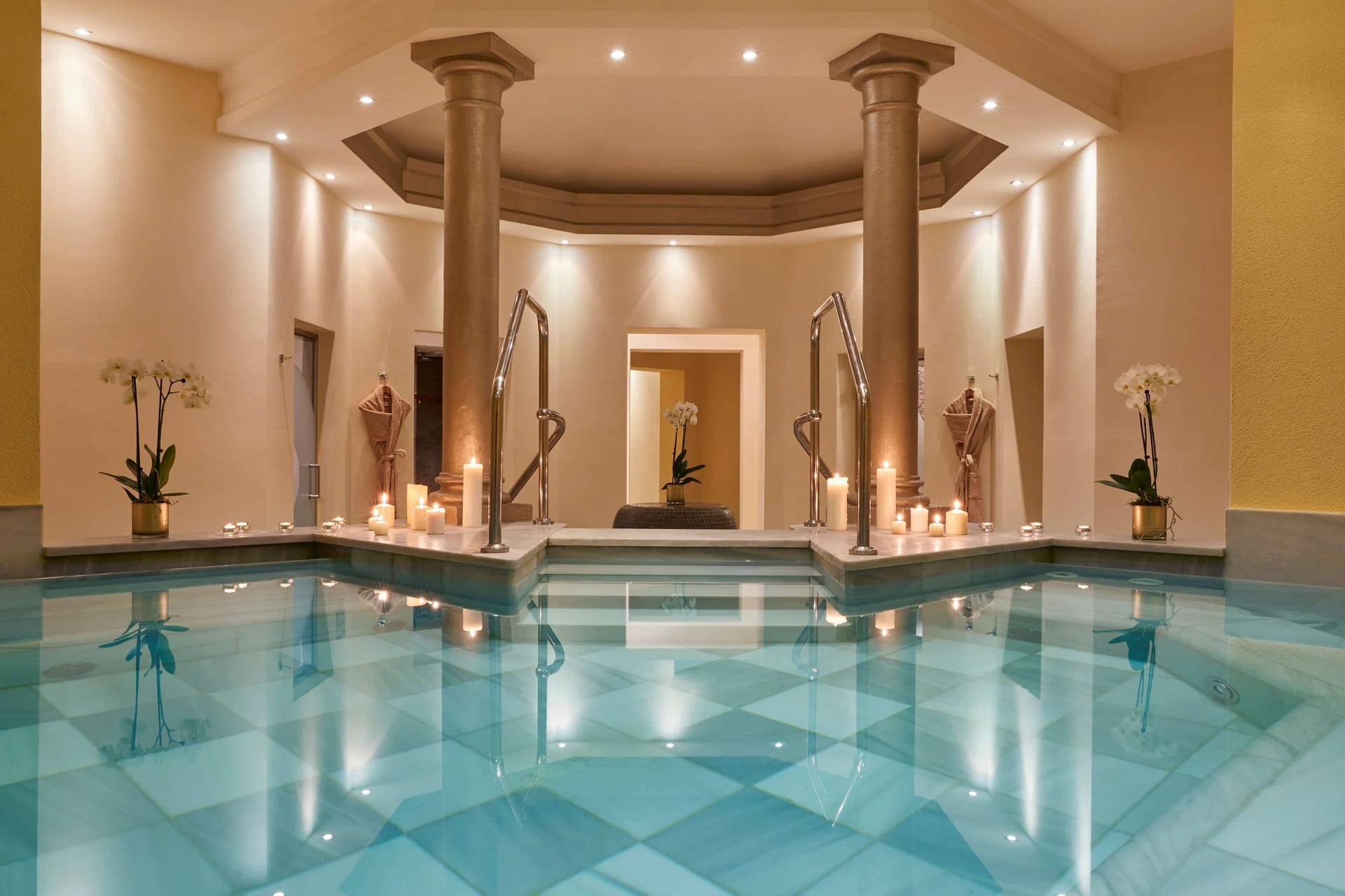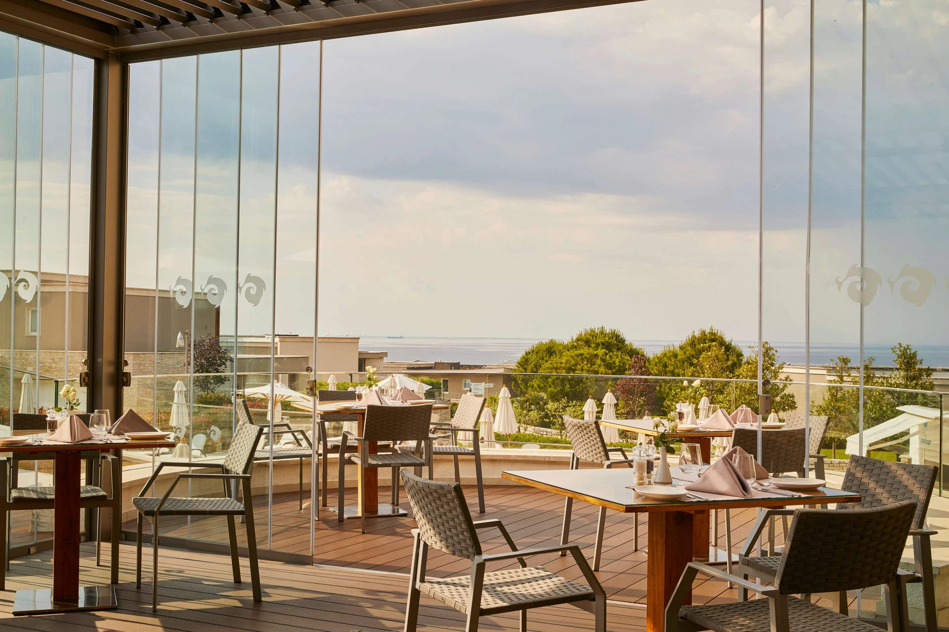 Presidential suitе – Jure Grando (263 кв. м): терраса (568 кв. м), гостиная с обеденной зоной и камином, спальня c кроватью king-size, ванная комната с гидромассажной ванной и душевой кабиной. Дополнительно: домашний кинотеатр. Вид на море и Альпы. Возможно объединение с номером категории Junior suite. В оформлении номера преобладают темные тона.