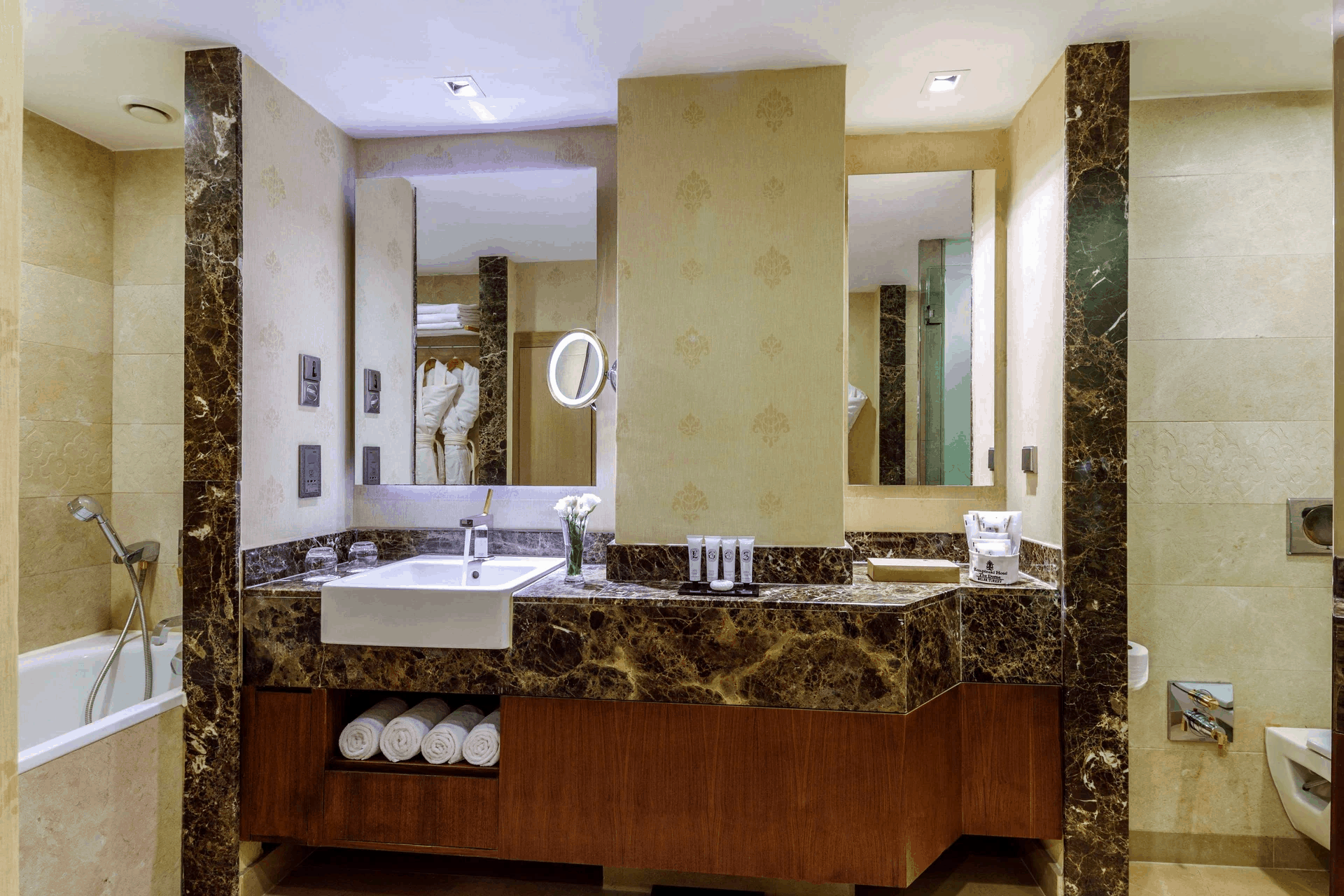 В спа-центре The Dome площадью 3600 кв. м. представлены разнообразные процедуры и виды массажа. В отеле подают блюда разных кухонь, от турецкой до интернациональной.