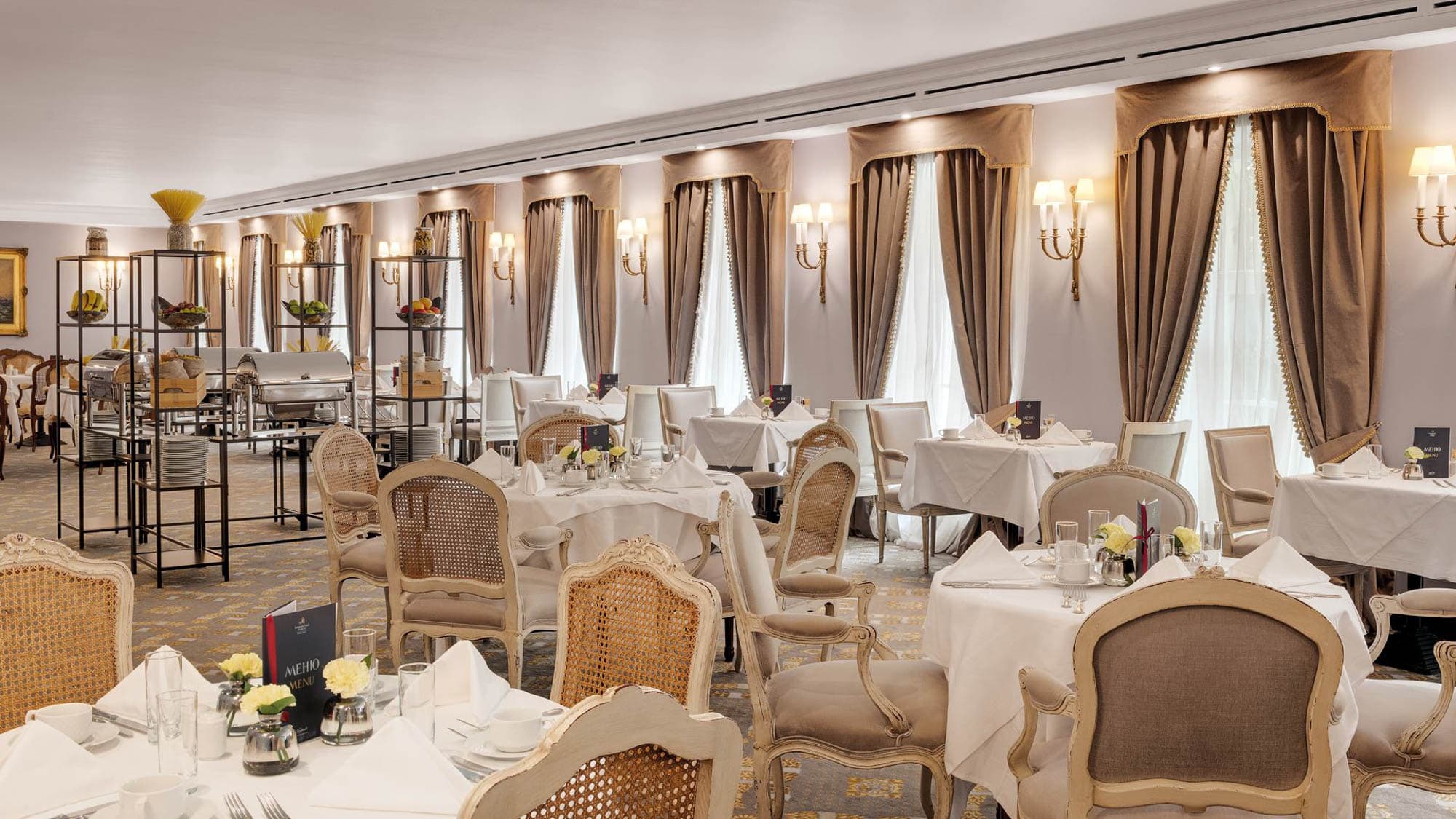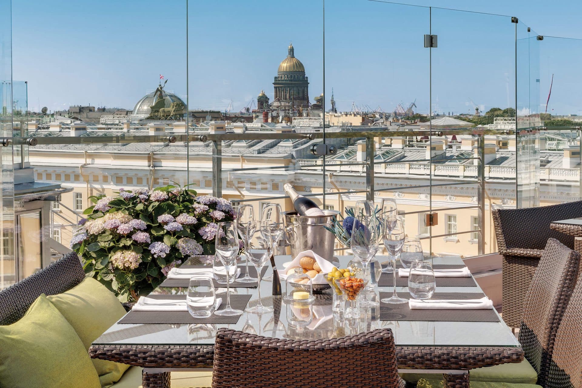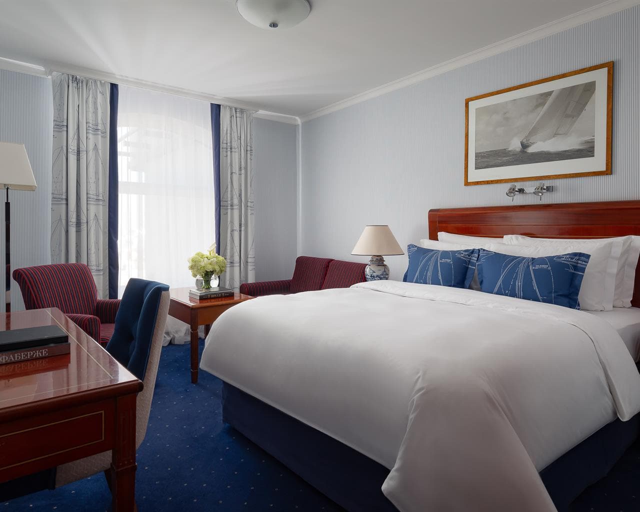 Executive suite (Представительский люкс) (65-75 кв. м): балкон (в некоторых номерах), гостиная, спальня с двуспальной или двумя отдельными кроватями, ванная комната с ванной и душевой кабиной. Вид на реку, Дворцовую площадь, Эрмитаж или внутренний двор. Возможно объединение номеров.