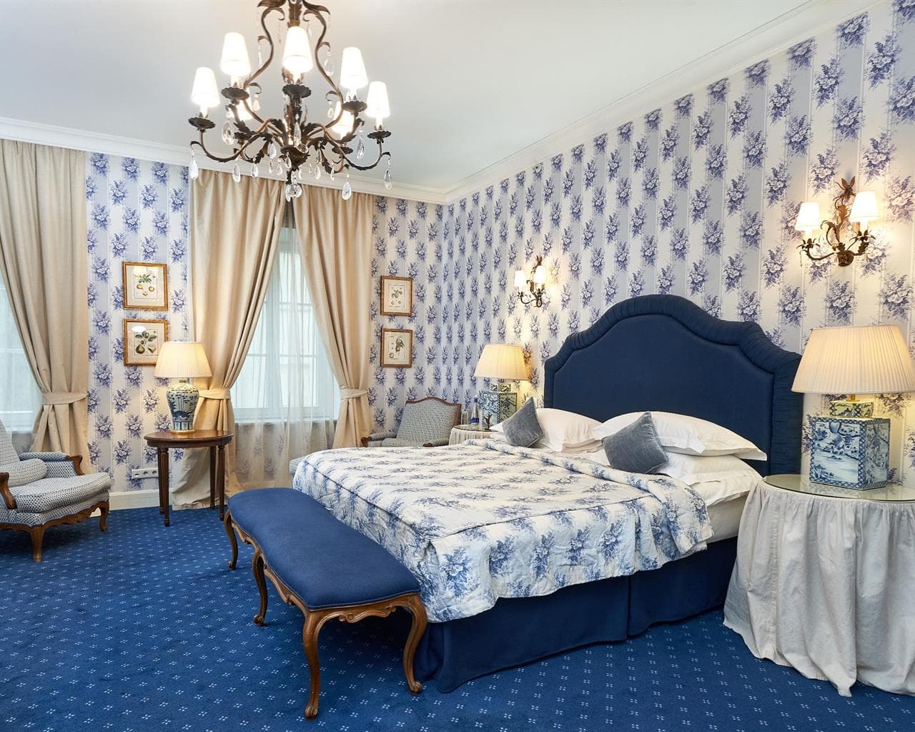 Grand deluxe suite (Люкс «Гранд делюкс) (42 кв. м): спальня с гостиной зоной (двуспальная или две отдельные кровати), ванная комната с ванной и душевой кабиной. Вид на внутренний двор или реку.