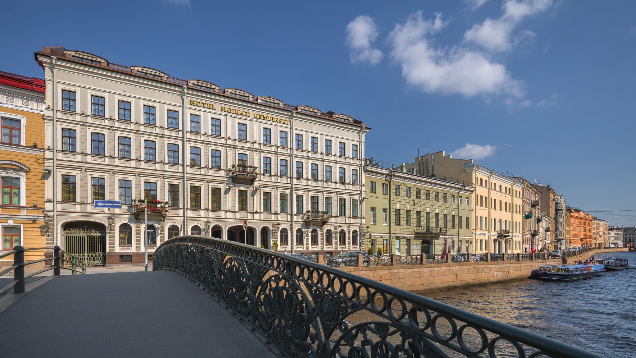 Hermitage suite (Люкс «Эрмитаж») (75 кв. м): балкон, гостиная, спальня с двуспальной или двумя отдельными кроватями, ванная комната с ванной и душевой кабиной. Вид на реку и Эрмитаж.
