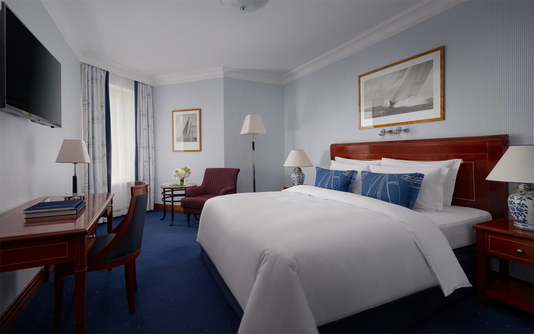 Grand deluxe room (номер «Гранд делюкс») (30-34 кв. м): спальня с гостиной зоной (двуспальная или две отдельные кровати), ванная комната с ванной. Вид на город, реку или внутренний двор.