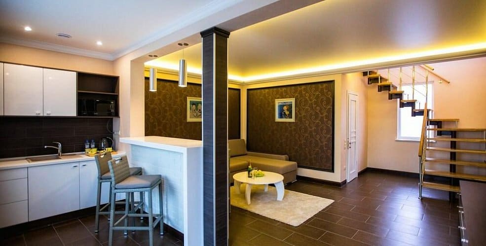 Дача Айвазовского Просторная двухэтажная дача площадью 75 кв.м. оформлена в современном классическом стиле. Даже когда солнце в зените и на улице стоит изнуряющая жара, в даче Айвазовского комфортно и свежо. Мы приглашаем Вас в мир простора и уюта, где современные технологии и традиции гостеприимства связаны воедино. В даче Айвазовского с комфортом может разместиться до 4-х взрослых и 2-х детей одновременно.