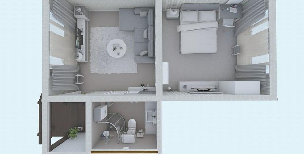 Дача Грина Двухкомнатная дача с просторной гостиной и отдельной спальней площадью 40 кв.м в романтическом стиле. Дача Грина отличный вариант для супружеских пар и романтических уикендов, однако при необходимости в ней может разместиться до 4-х человек. Дача оборудована всем необходимым для комфортного и беззаботного отдыха. Имеет отдельный вход, а также балкон или небольшое патио перед входом.