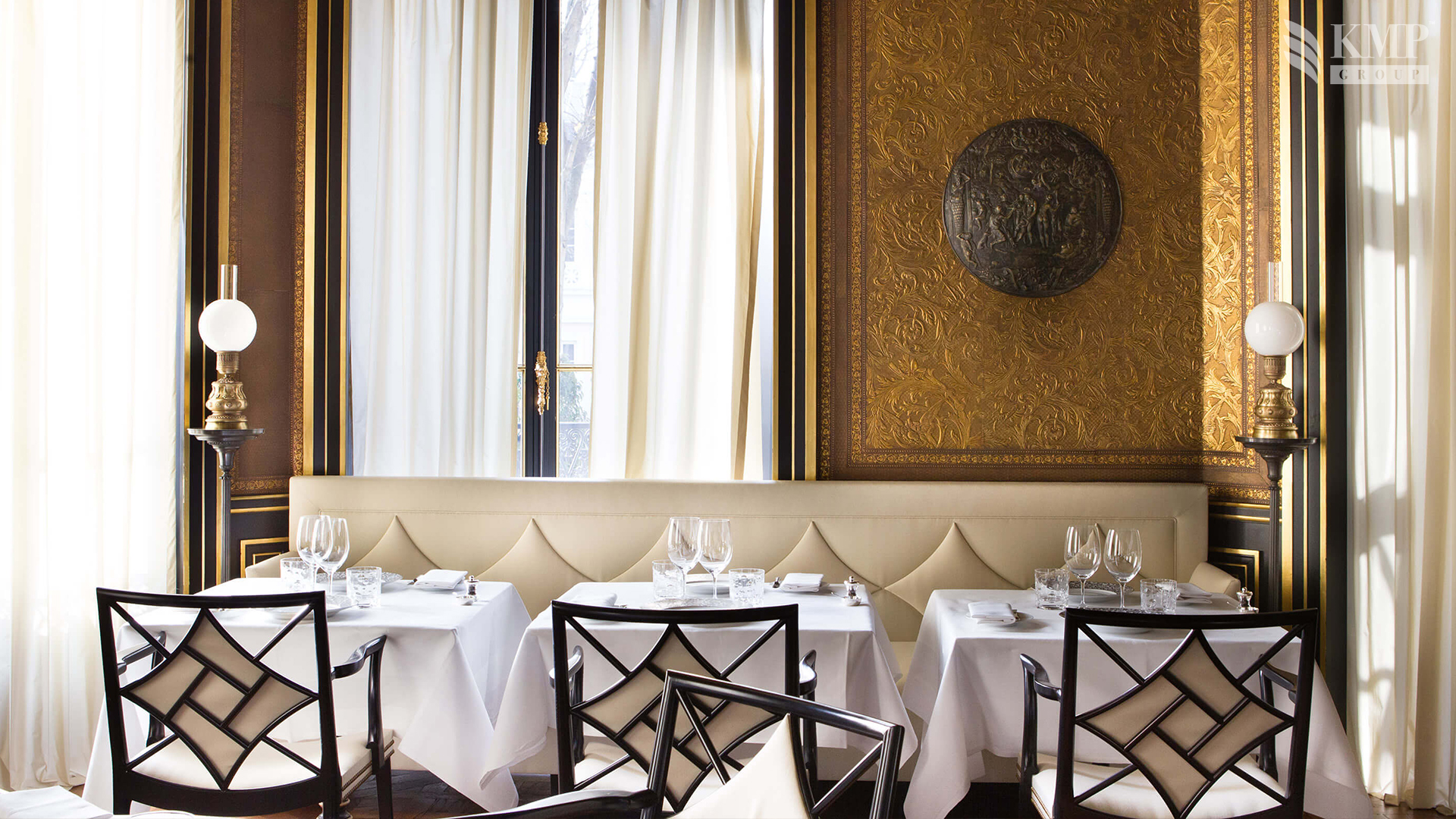 Grand Palais suite (225 кв. м). Балкон, 2 гостиные, 2 спальни, 2 гардеробные, 2 ванные комнаты (каждая – с ванной и душем). Дополнительно: винный погреб. Вид на Елисейские поля, Эйфелеву башню, Большой дворец и город.
