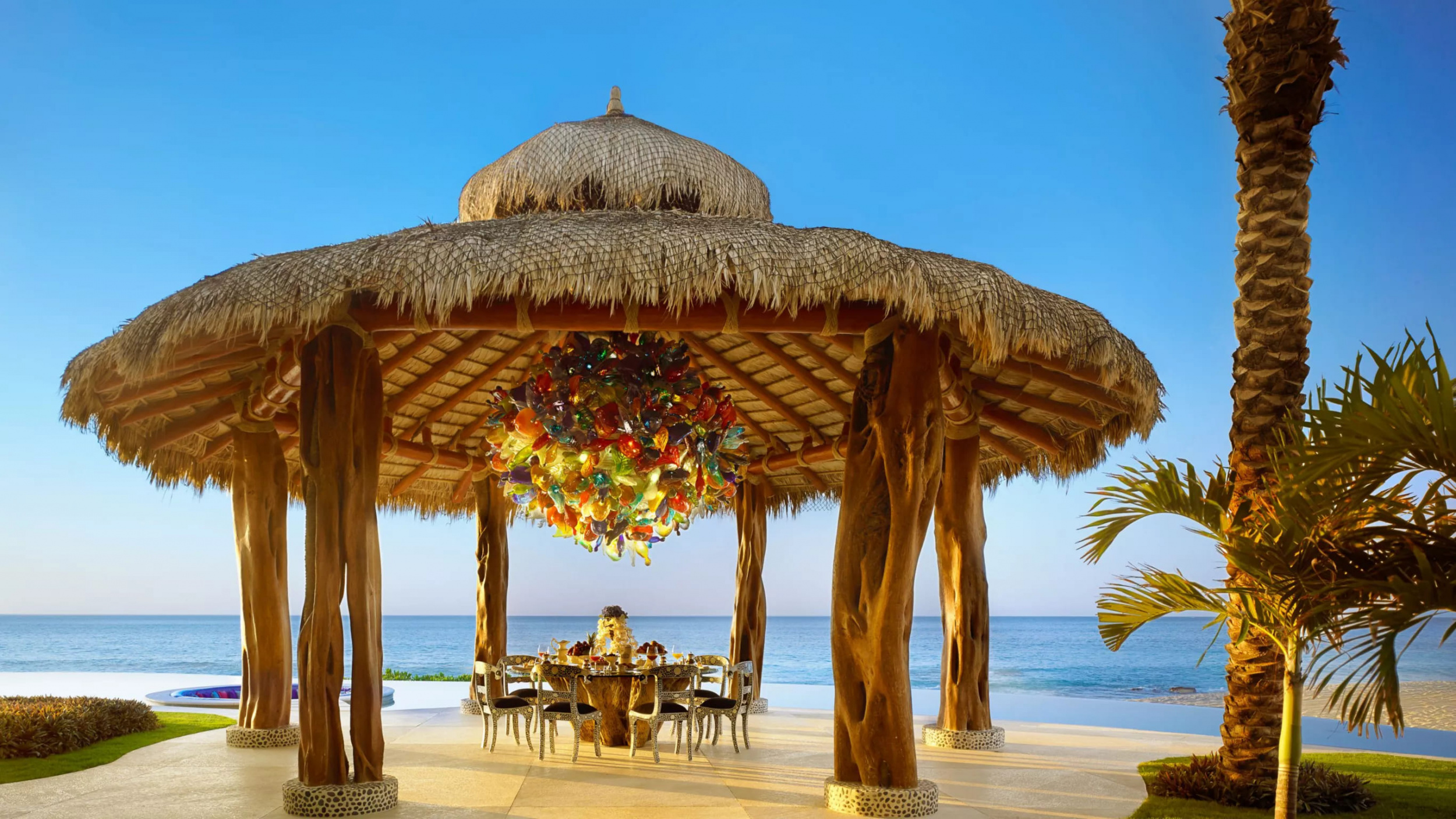 Two bedroom oceanview suite (362 кв. м): гостиная, кухня, винный погреб, 2 спальни, ванная комната. Дополнительно: джакузи на открытом воздухе. Расположены на четвертом этаже. Вид на океан. Услуги персонального камердинера.