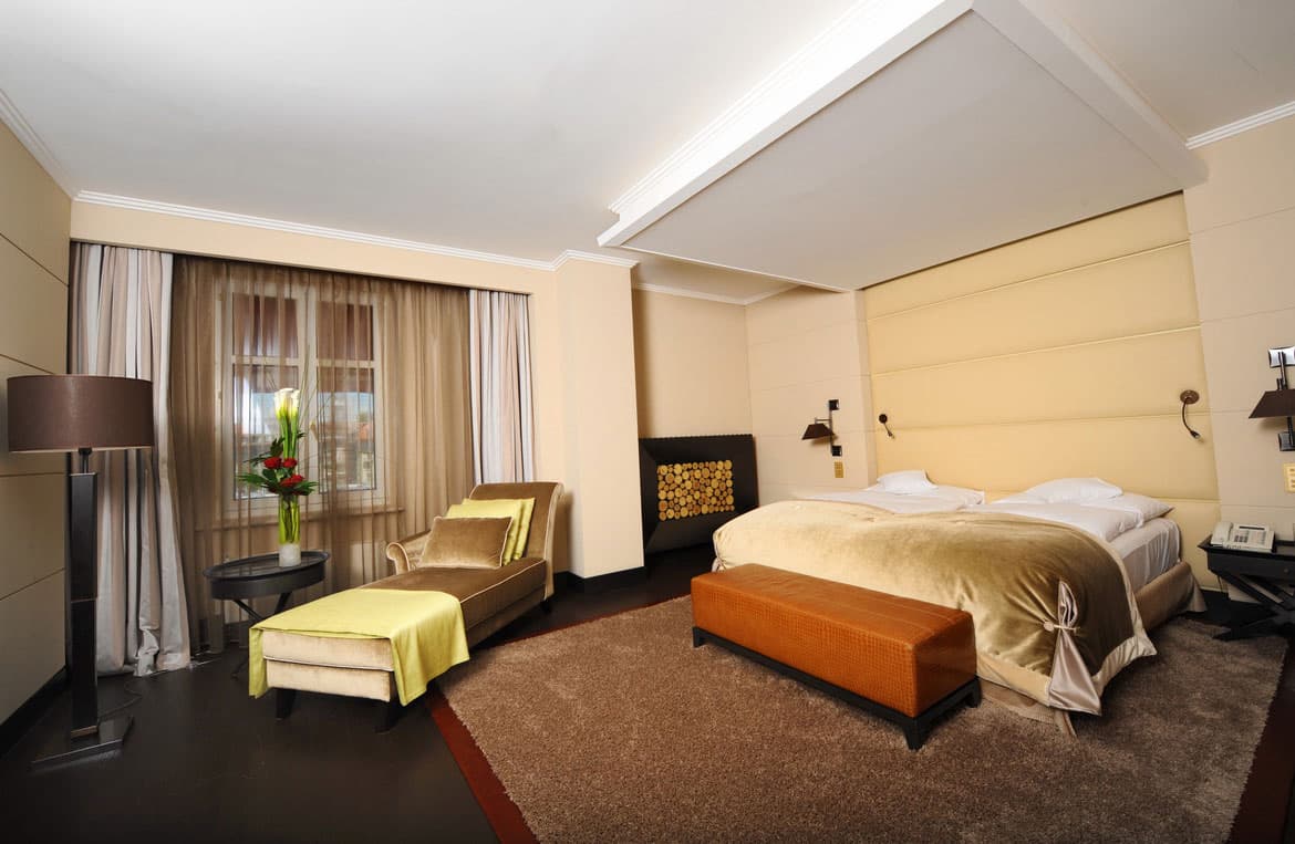146 номеров, включая 30 номеров категории suite, 4 ресторанов, 3 бара, винный погреб, SPA-центр, тренажерный зал, 6 банкетных залов (до 400 человек), 8 конференц-залов, бизнес-центр, WI-FI доступ в Интернет, библиотека, ночной клуб, парковка, услуги консьержа, услуги няни
