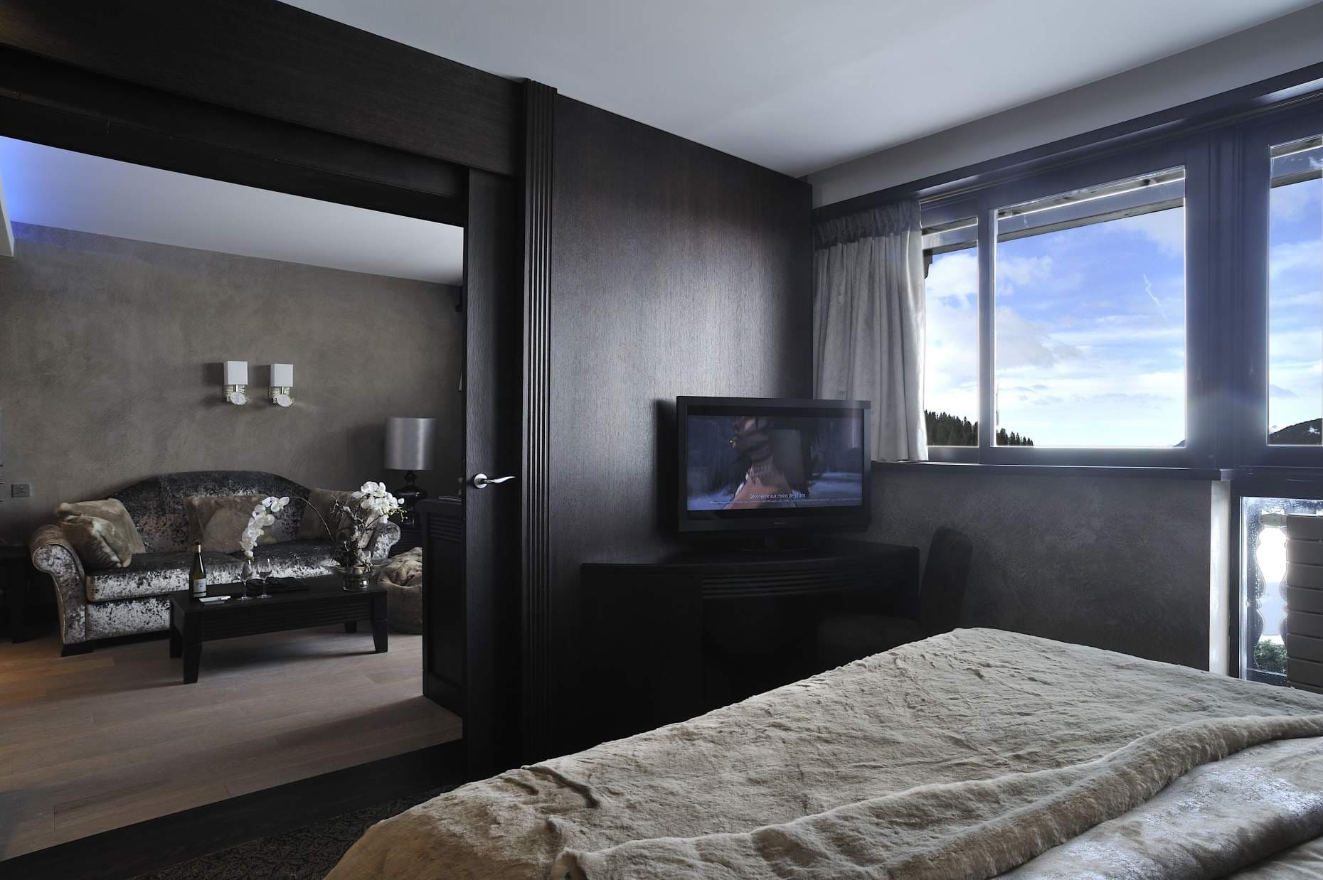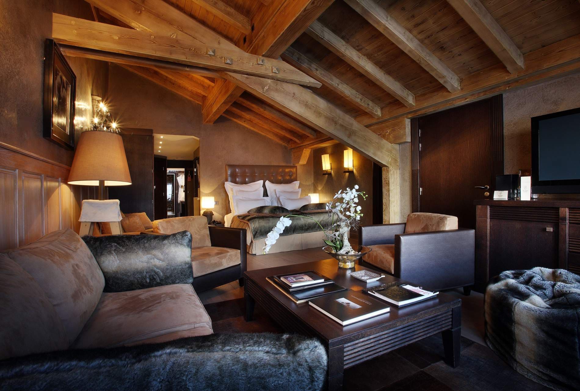 Suite: светлые и просторные номера прекрасно подходят для семей или влюбленных пар. Теплота и уют делают их идеальным местом для отдыха после насыщенного дня, проведенного на лыжной трассе. Состоит из спальни, гостиной зоны, ванной комнаты.