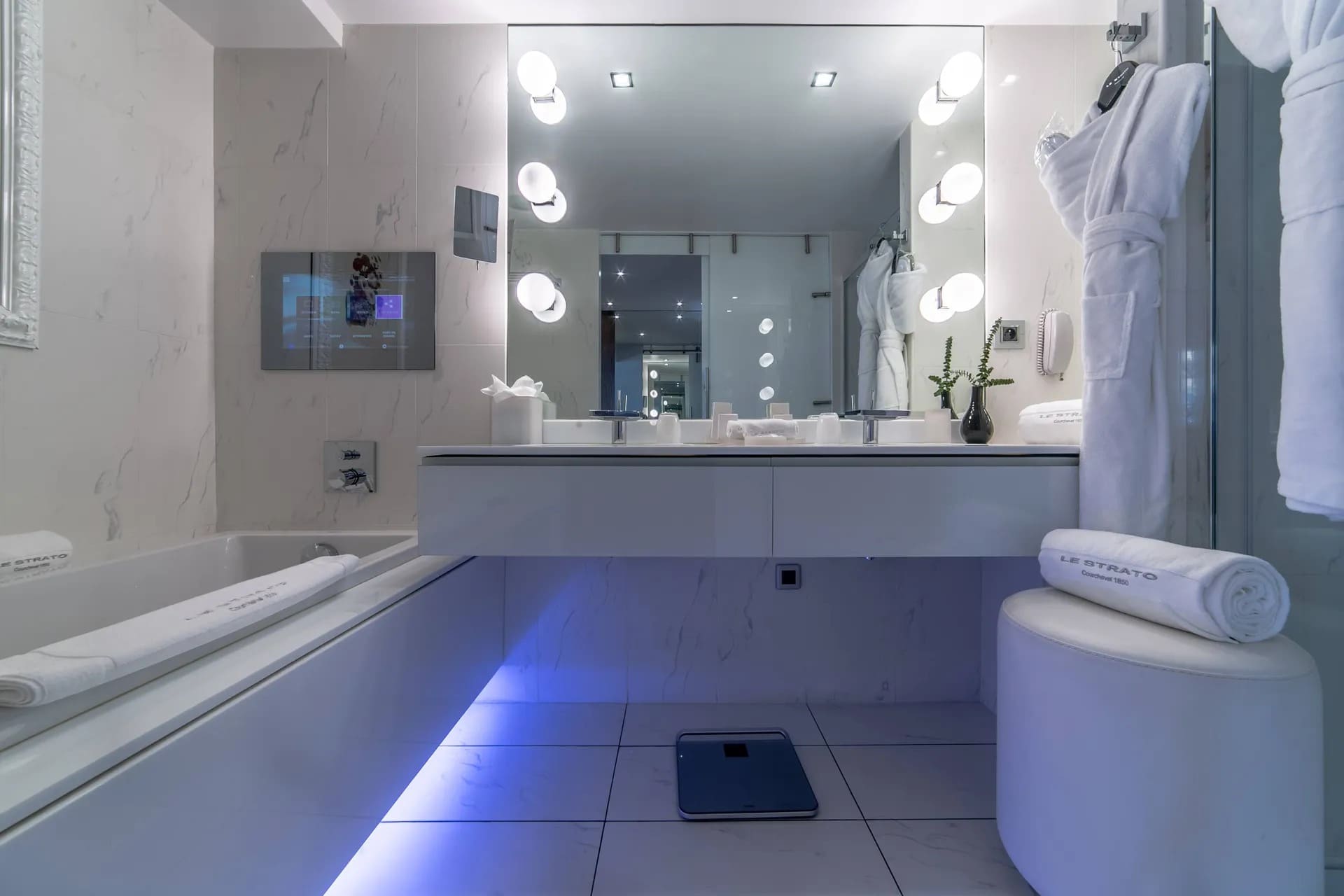 Duplex luxe suite (101 кв. м). Двухуровневый номер. 2 балкона, гостиная, спальня, 2 ванные комнаты. Расположен на южной стороне.
