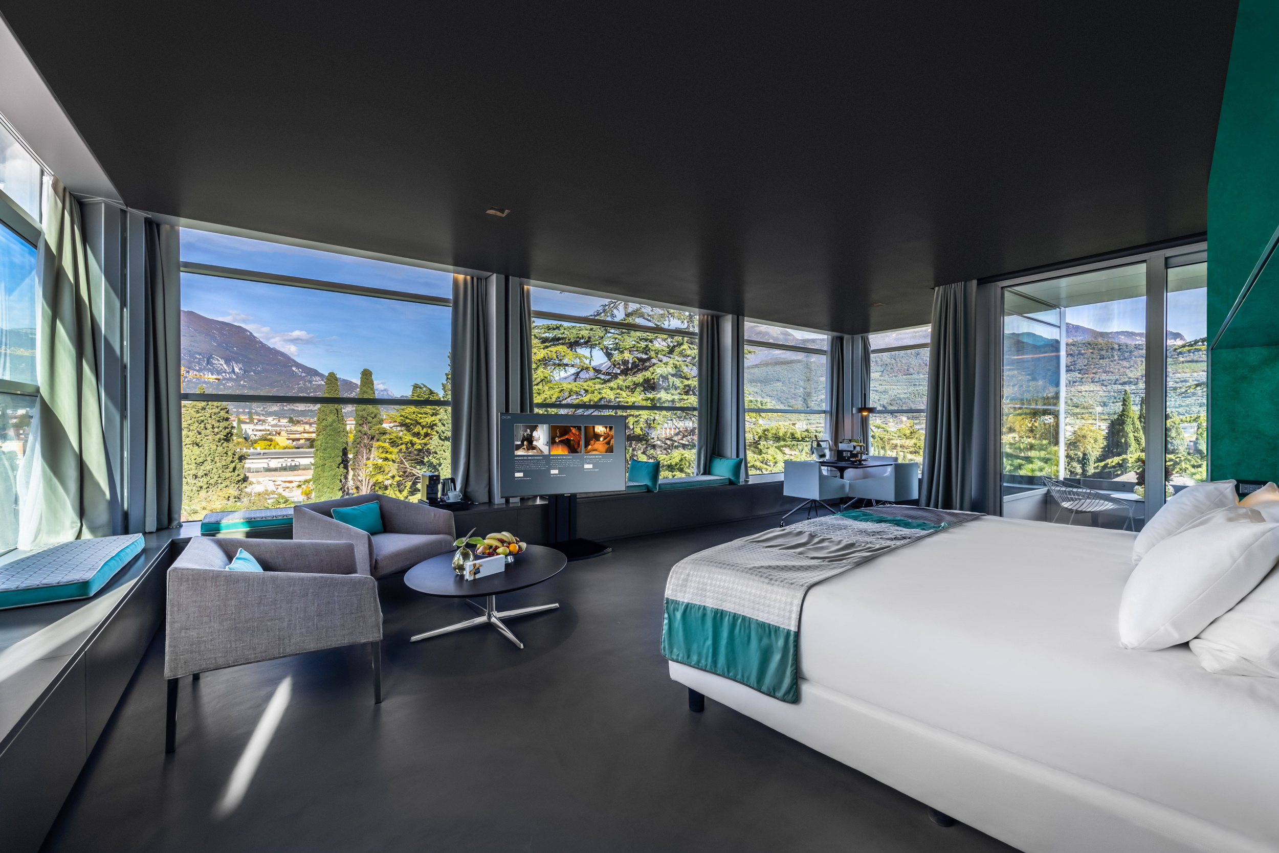 На берегу красивейшего озера Гарда стоит элегантный особняк отеля Lido Palace, впервые открывший свои двери в 1899 году. Спустя сто с лишним лет, в 2011 году, отель получил второе рождение благодаря реконструкции, во время которой историческое здание отеля было восстановлено с огромным вниманием к деталям, а интерьер приобрел сдержанное современное оформление, интересно контрастирующее с внешним обликом палаццо конца XIX века. В оформлении номеров преобладают сдержанные тона и стремление к минимализму, но кажущуюся строгость смягчают яркие детали вроде бирюзовой мебели в лобби или акварельных всплесков красок на барной стойке. На верхнем панорамном этаже расположились самые роскошные номера с потрясающими видами на горы и озеро. Здание отеля окружено великолепным парком конца XIX века. На его территории среди кедров и кипарисов, магнолий и тисов, туй и пальм находится открытый бассейн.