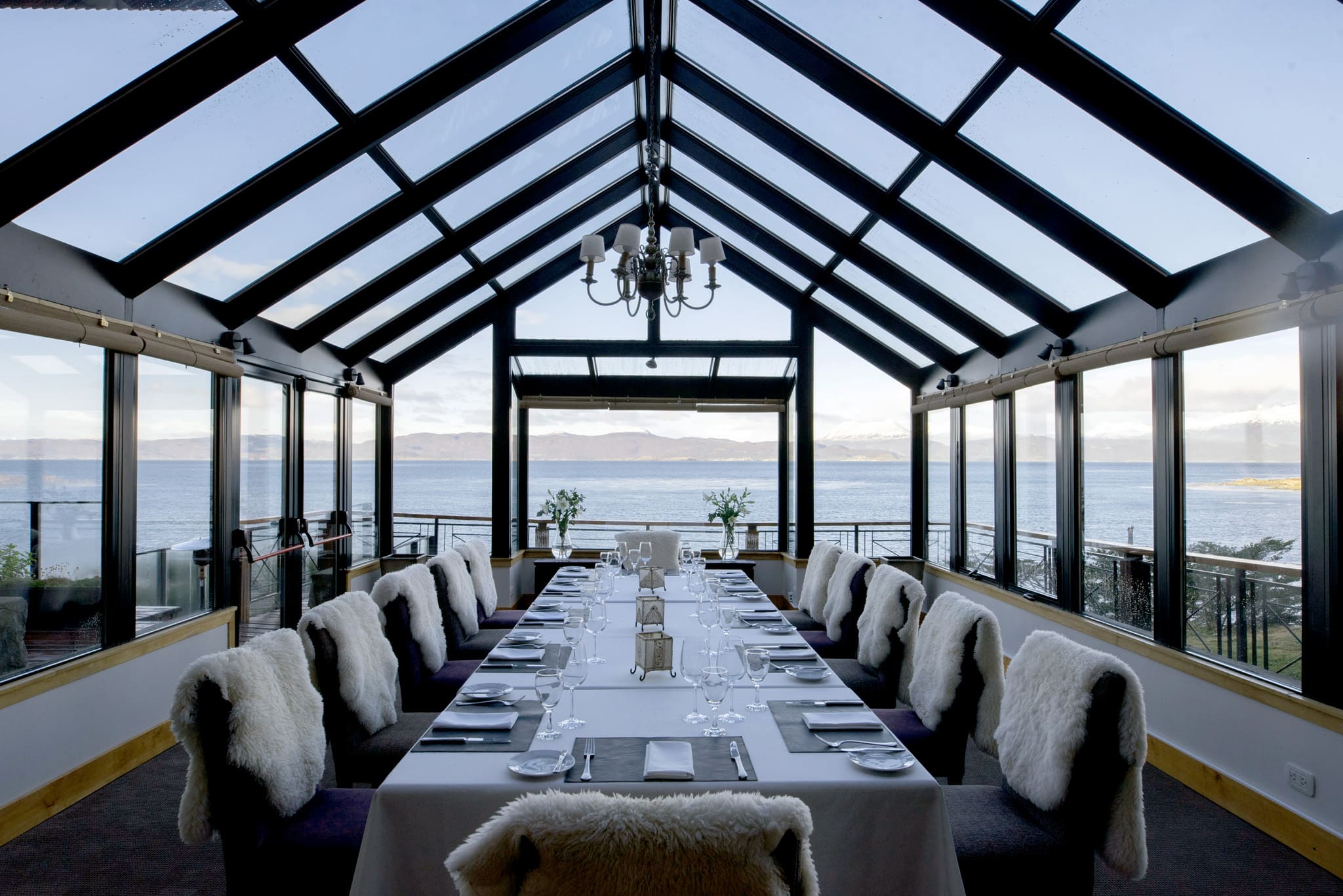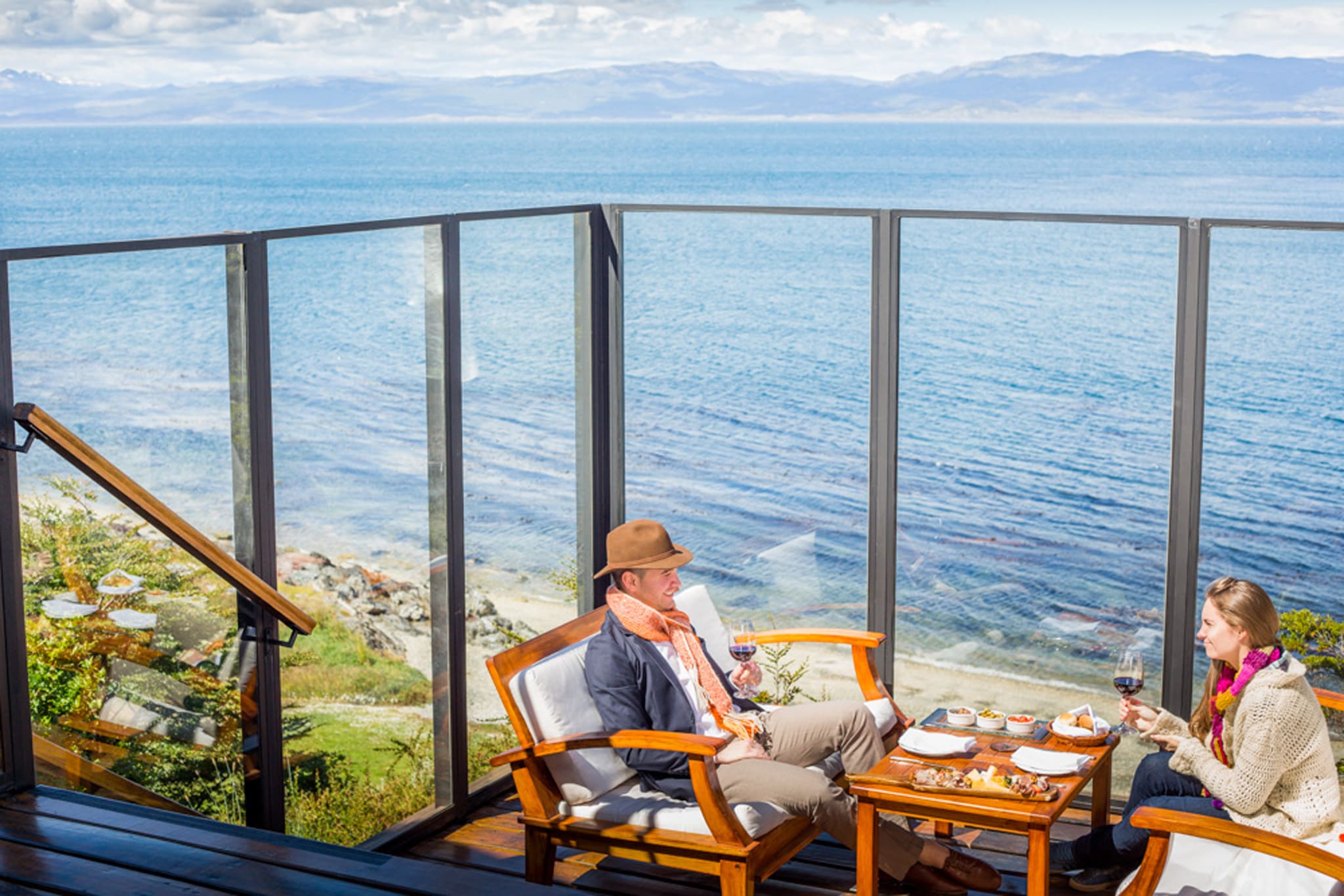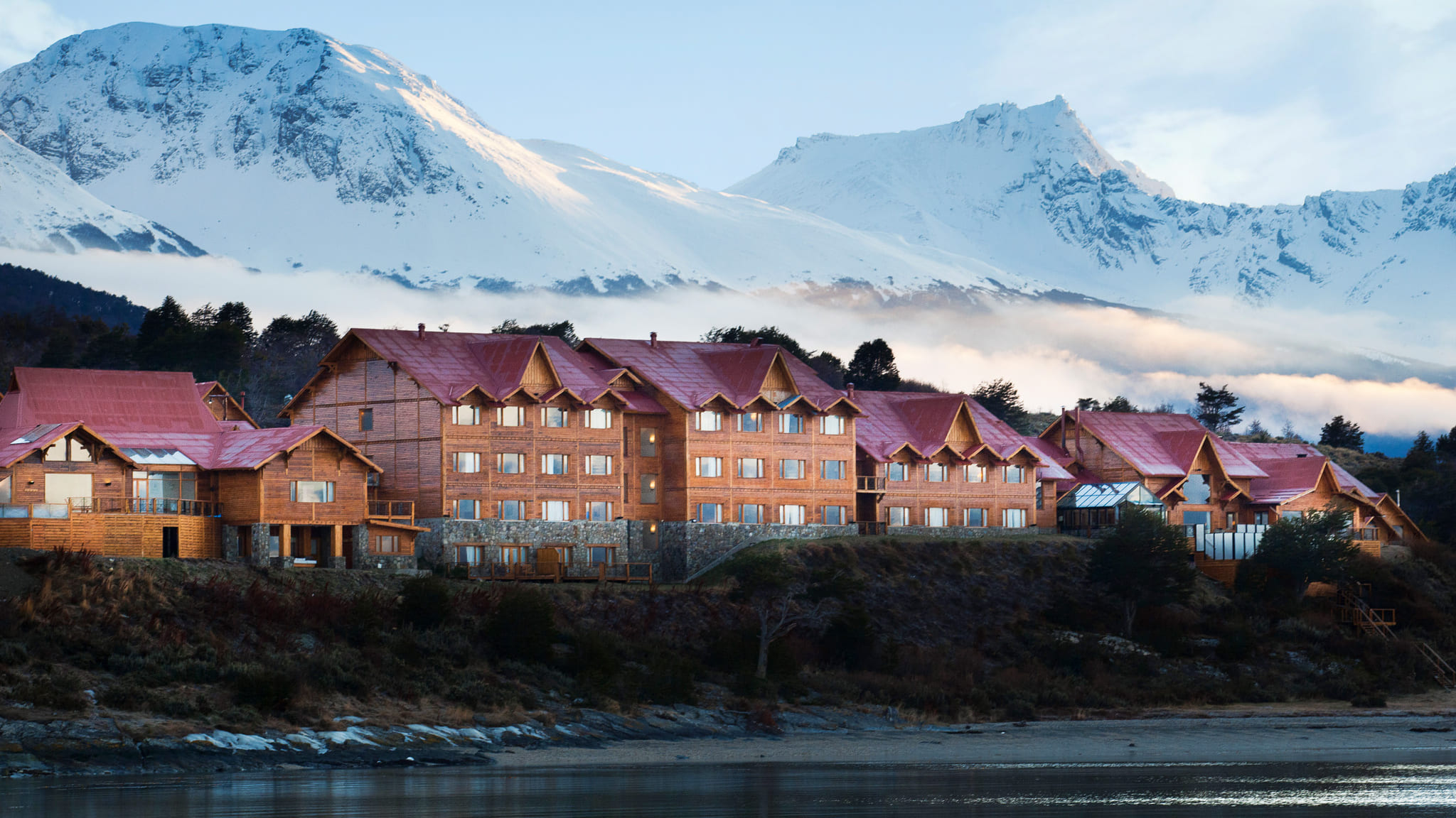 Standard room (26 кв. м). Спальня с кроватью king-size или двумя отдельными кроватями, ванная комната. Вид на горы или на пролив Бигля.
