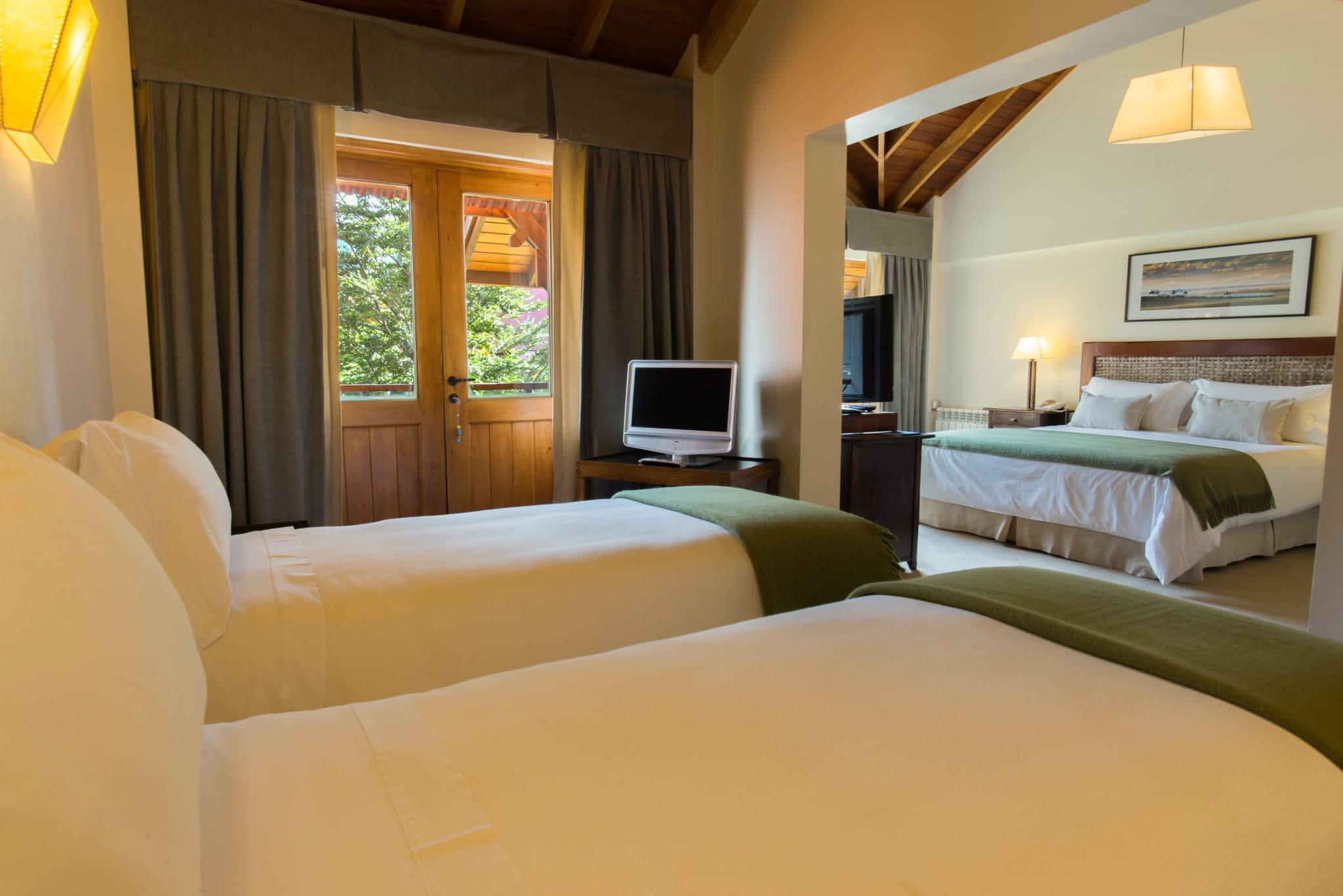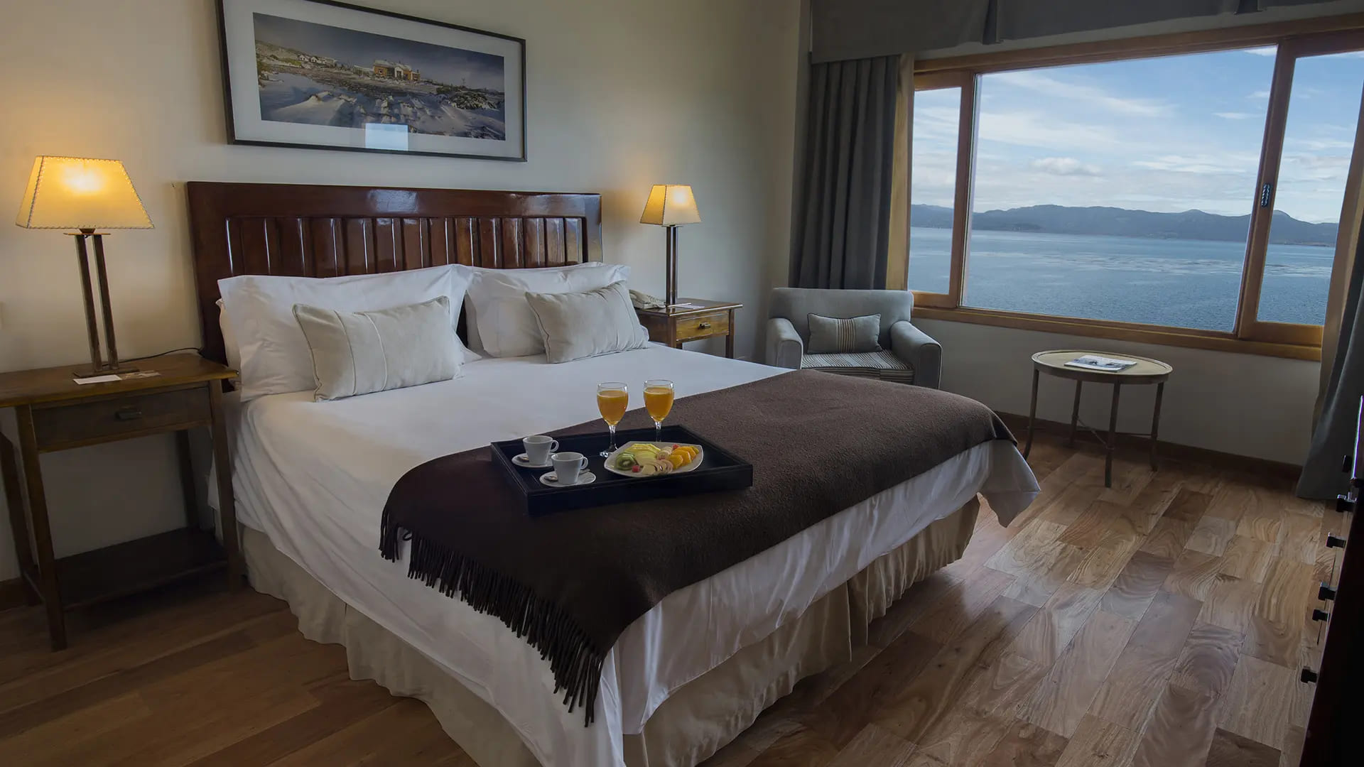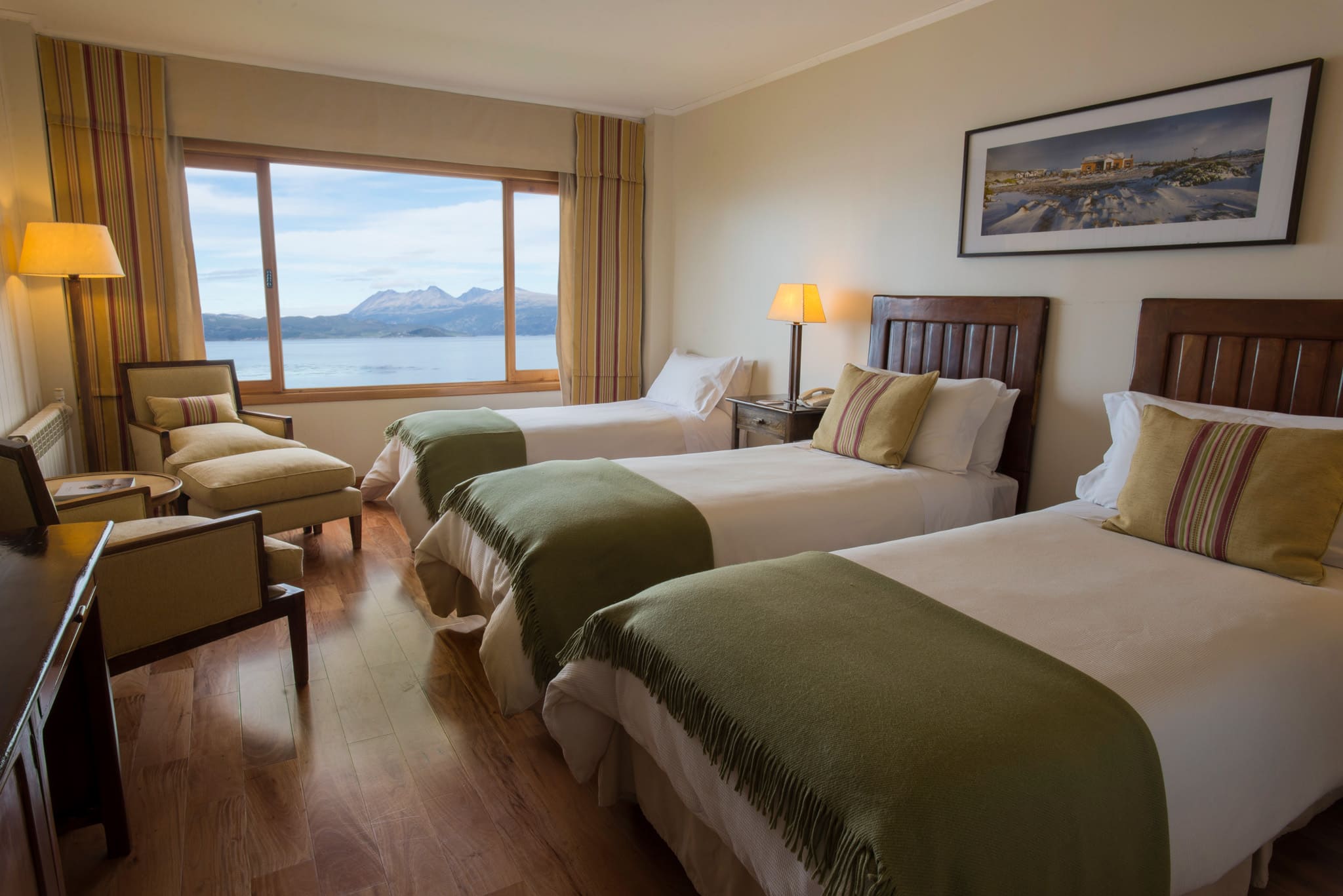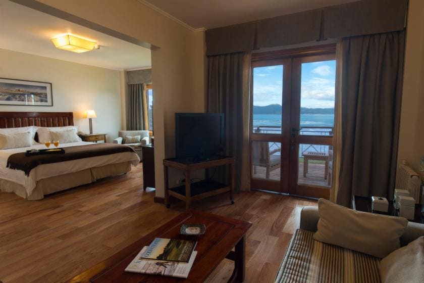 Superior room (30 кв. м). Спальня с кроватью king-size или двумя отдельными кроватями, ванная комната. Возможно объединение номеров. Вид на пролив Бигля.