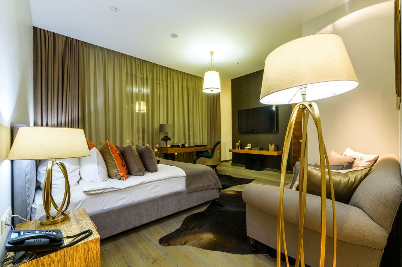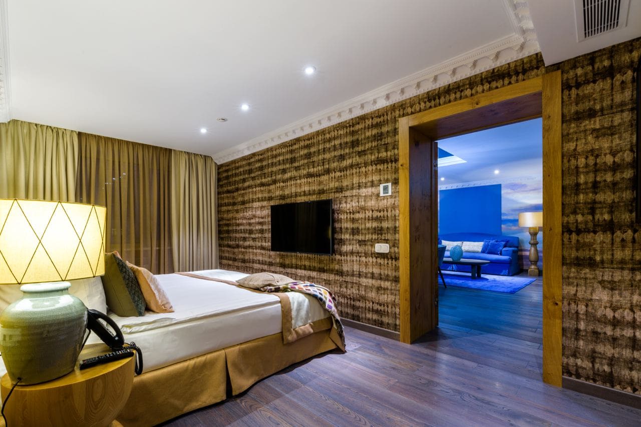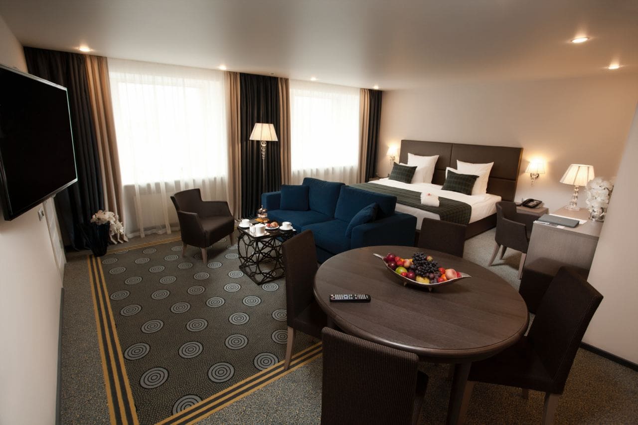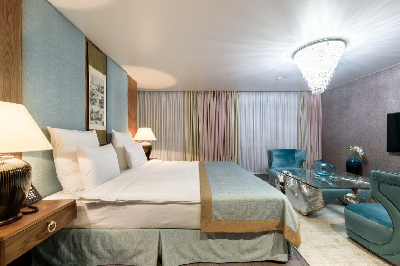 Junior suite business (Полулюкс бизнес) (40 кв. м): спальня с гостиной зоной (двуспальная кровать), ванная комната.