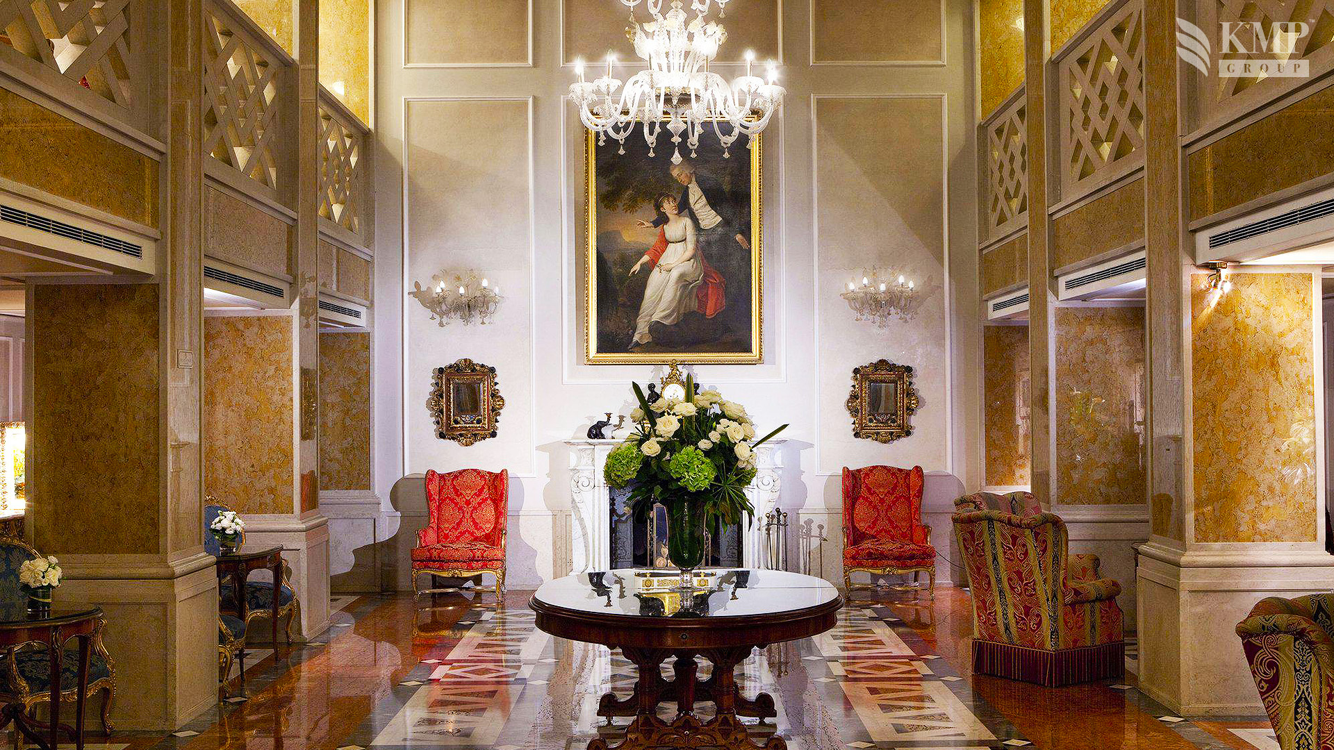 Grand lagoon suite Tiepolo (60 кв. м). Терраса, гостиная, спальня с кроватью king-size, ванная комната с ванной. Вид на залив Сан-Марко и остров Сан-Джиорджио. Гости данных номеров имеют особые привилегии.