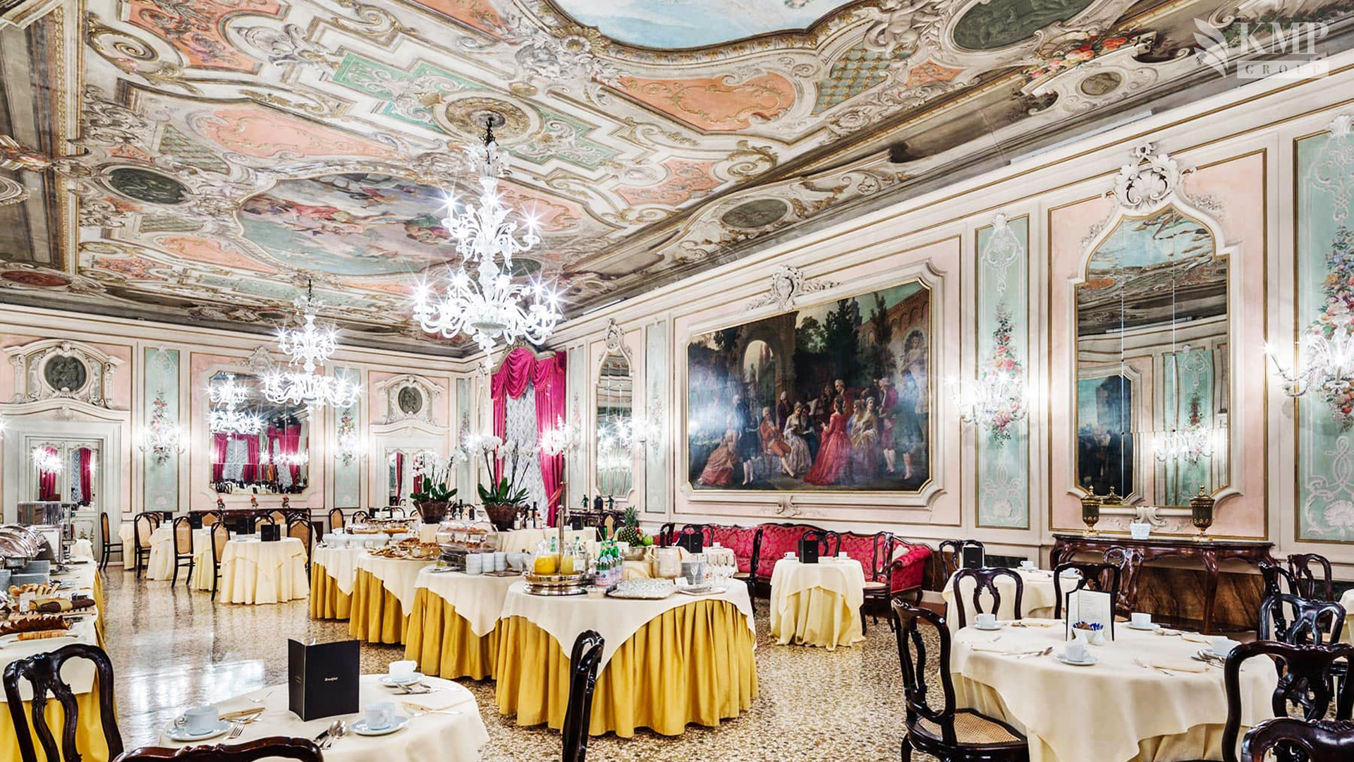 Presidential suite Giorgione (70 кв. м). Двухуровневый номер с террасой, гостиной с камином, спальней с кроватью king-size, двумя ванными комнатами с джакузи. Вид на город и лагуну. Гости данных номеров имеют особые привилегии.