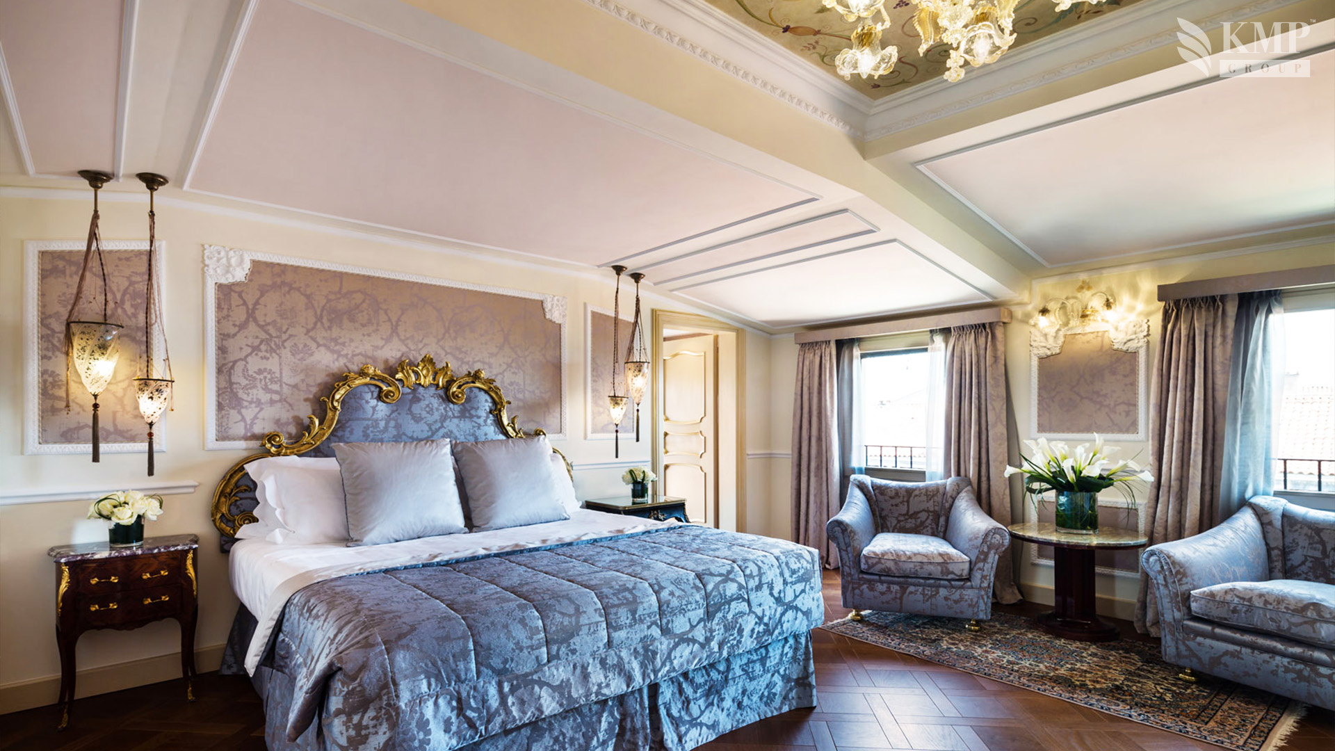 Junior suite (40-45 кв. м). Гостиная зона, спальня, ванная комната. Вид на внутренний дворик или улицу (в некоторых номерах на лагуну или каналы).