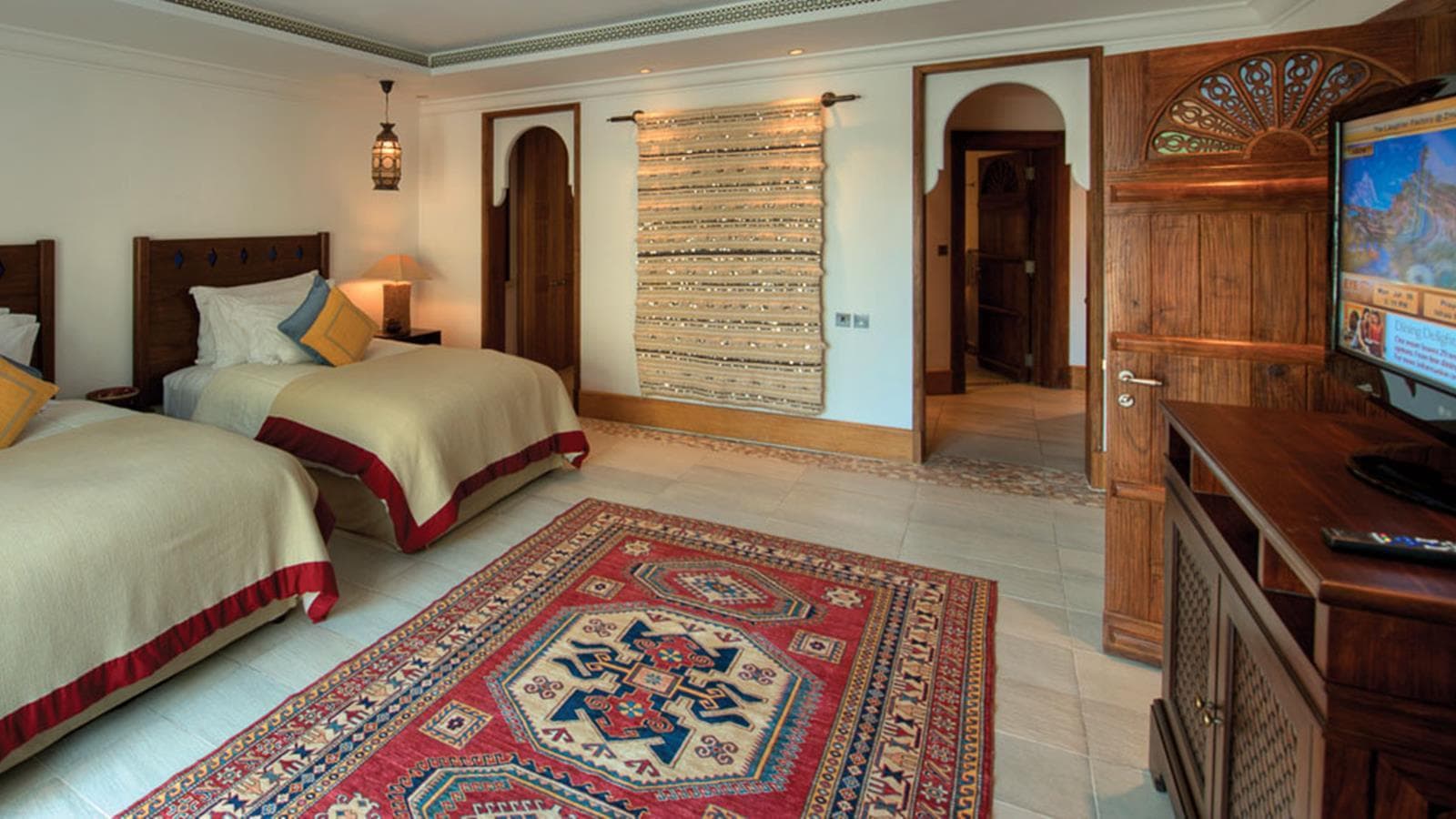 Malakiya villa 2-bedroom (275 кв.м): терраса с открытым персональным бассейном, балконы, гостиная с обеденной зоной, кухня, 2 спальни (одна – с кроватью king-size, вторая – с двумя отдельными кроватями), комната для прислуги, 2 ванные комнаты (каждая – с джакузи и гидромассажным душем), гостевой туалет. Вид на сады, водоемы и территорию курорта. Гости данных номеров имеют особые привилегии.