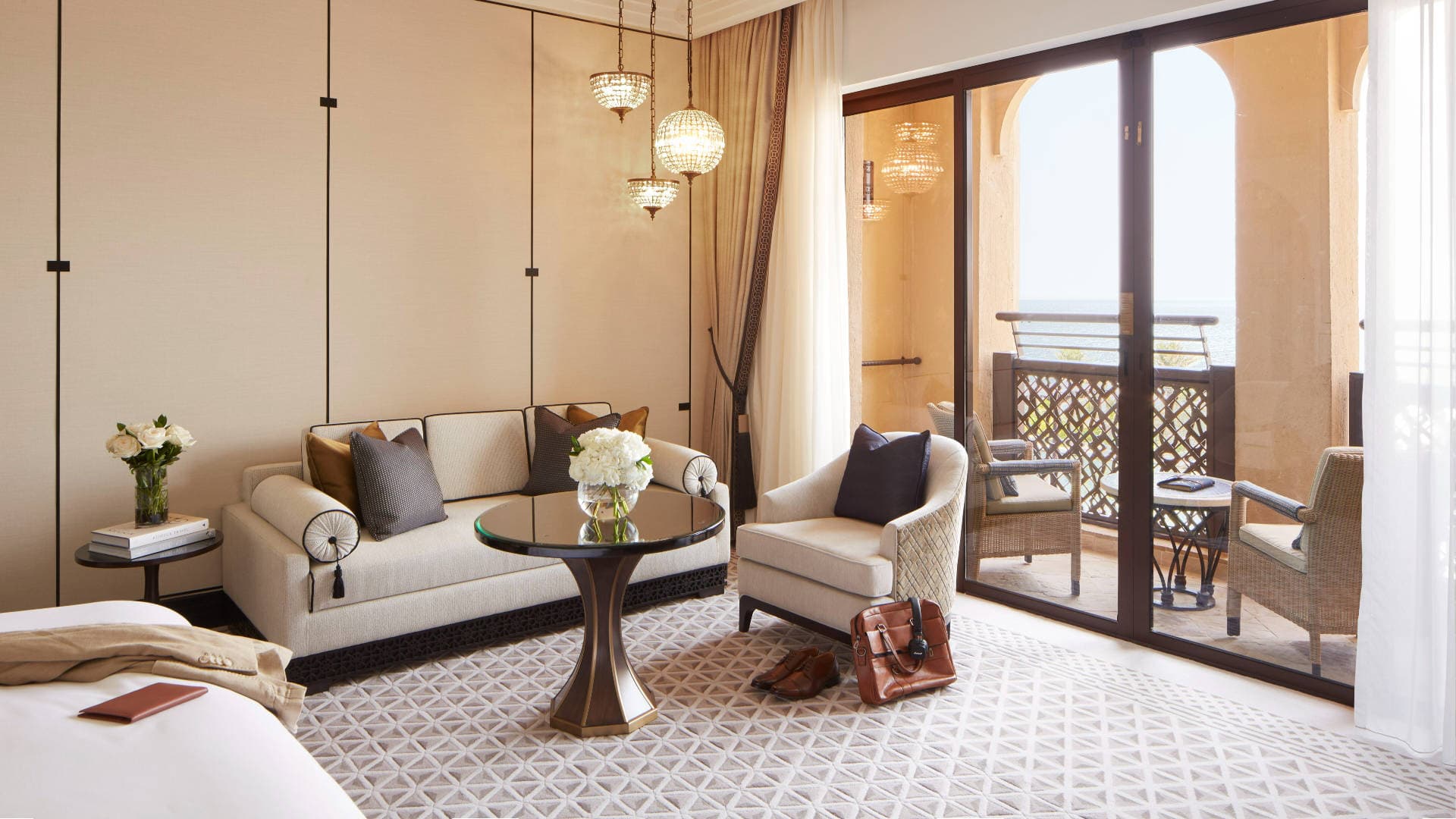 Балкон, спальня с гостиной зоной (кровать king-size или две отдельные кровати), гардеробная зона, ванная комната с ванной и душевой кабиной с функцией «тропический дождь». У некоторых номеров - вид на отель Jumeirah Al Naseem. - 50 кв. м.