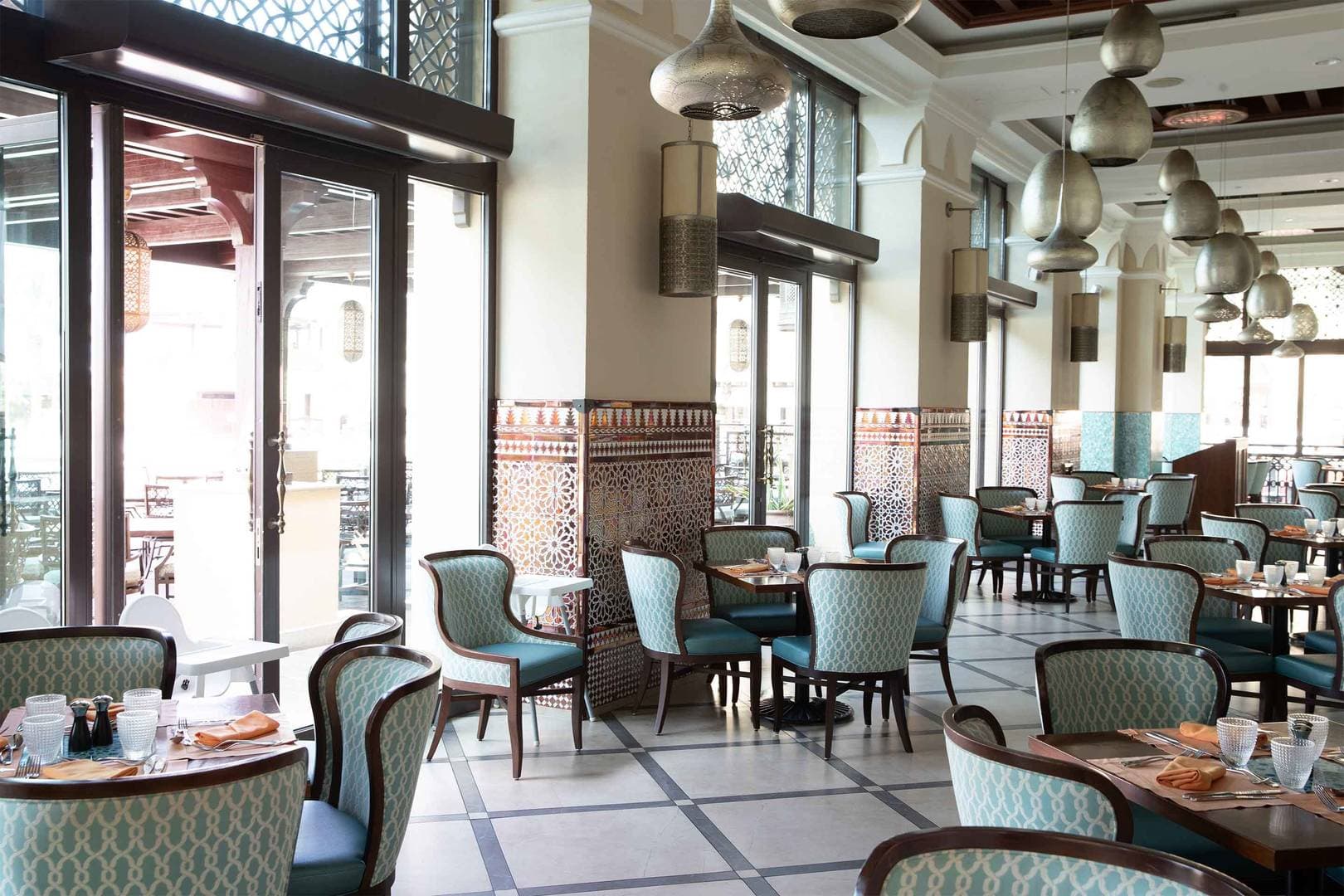 С качеством еды и напитков в комплексе Madinat Jumeirah может соперничать только их разнообразие. Здесь открыто более 40 признанных во всем мире ресторанов, баров и лаунджей, где представлены всевозможные тематики, стили и кухни. Будь то великолепный тайский ужин или изысканные коктейли на вечерней набережной — в комплексе Мадинат Джумейра найдутся варианты на любой вкус. Гостям комплекса предоставляется бесплатный трансфер до аквапарка «Вайлд Вади», курортного комплекса Madinat Jumeirah, отеля Jumeirah Beach, небоскреба Бурдж-Халифа/центра Дубая, а также международного финансового центра Дубая.