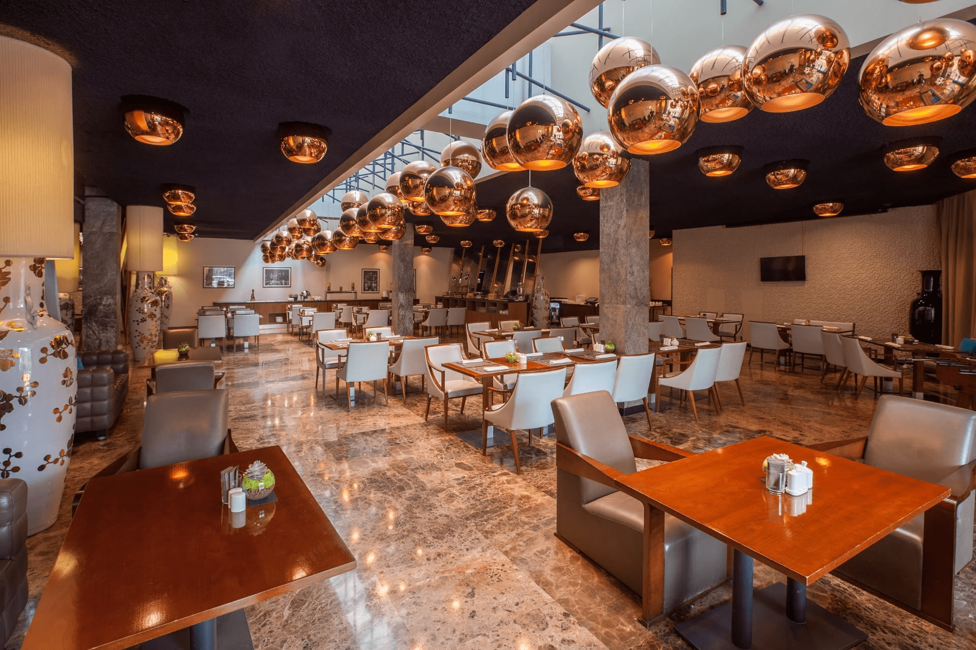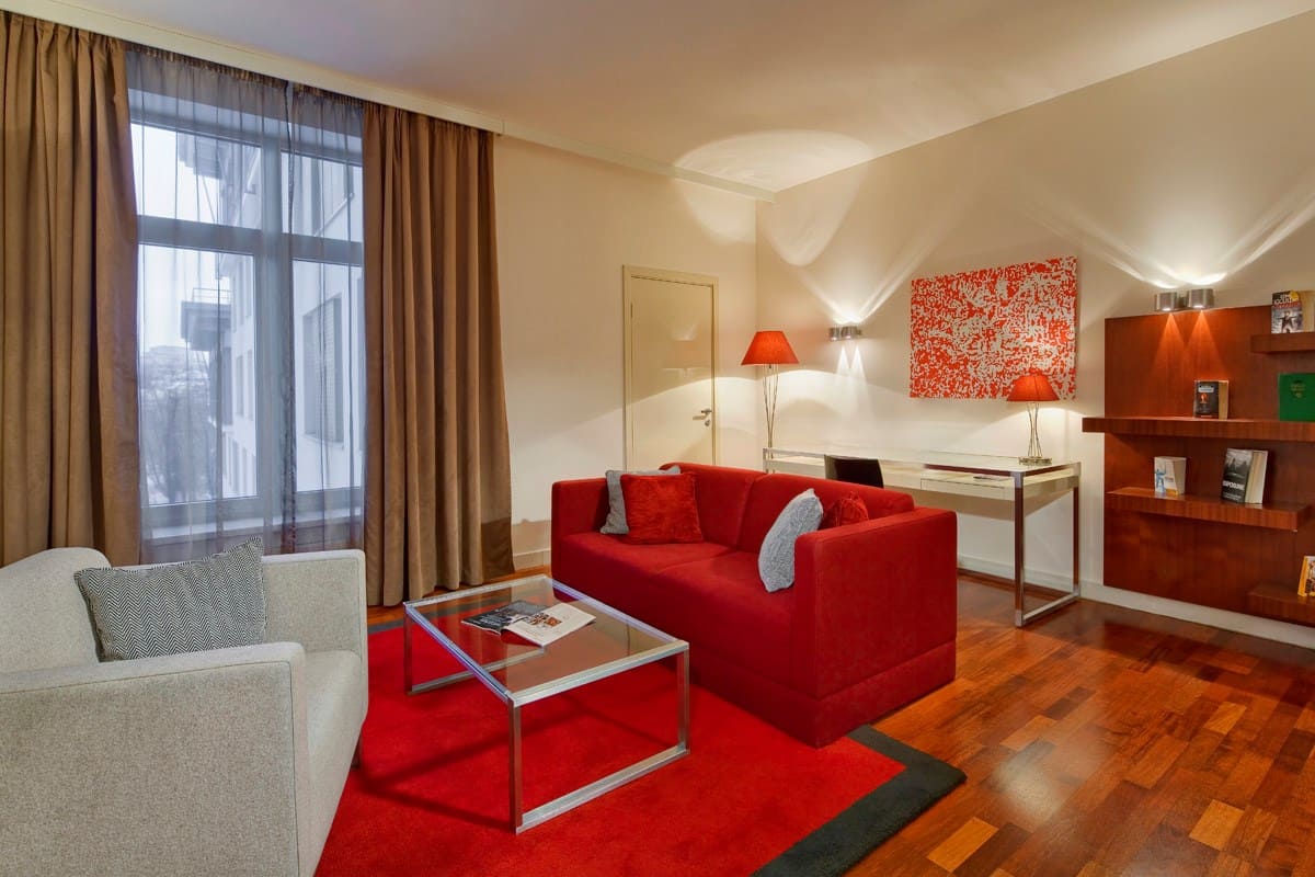 Presidential suite (161-207 кв. м): гостиная с обеденной зоной, мини-кухня, гардеробная, 2 спальни, 2 ванные комнаты с ванной и душевой кабиной или джакузи (в одном из номеров), гостевой туалет.