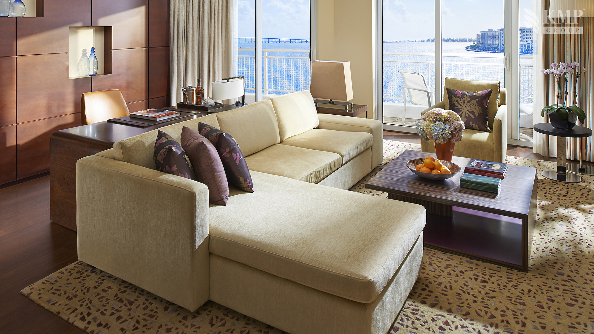 Brickell suite (82 кв м): балкон, гостиная, спальня с кроватью king-size или двумя отдельными кроватями, ванная комната с ванной и душевой кабиной, гостевой туалет. Дополнительно: кофемашина. Расположены с шестнадцатого по девятнадцатый этаж. Вид на залив и город.