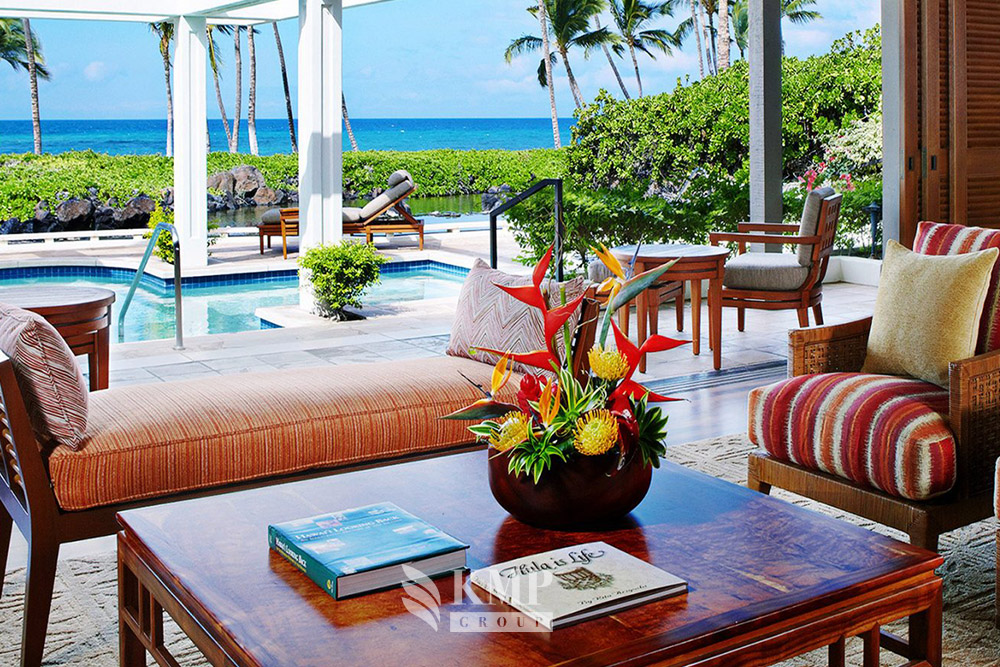 Ocean Front Room (52 кв. м). Элегантные комфортабельные номера. Небольшая зона отдыха с двухместным диванчиком и кофейным столиком, рабочий стол. Вид из номера на океан.