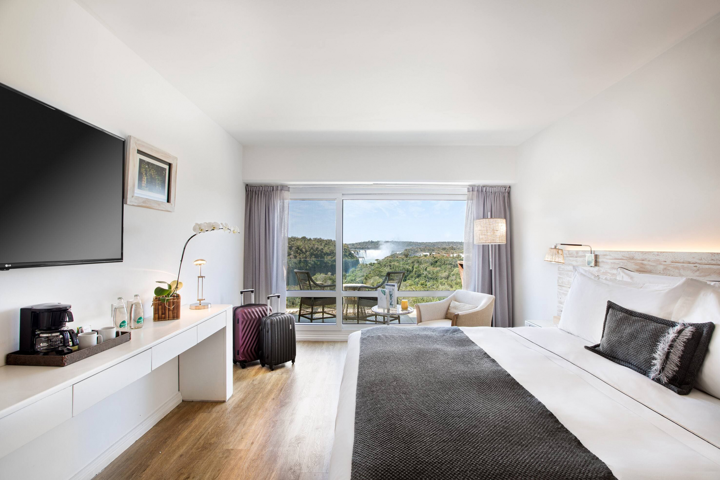 Из окон его номеров открывается захватывающая панорама знаменитого водопада. В отеле 176 номеров, ресторан, кафе, бар, открытый бассейн, детский бассейн, SPA-центр (12 процедурных кабинетов, закрытый подогреваемый гидромассажный бассейн, джакузи, сауна, парная, душ Vichy, массаж, шиацу, рейки, стоунтерапия, ароматерапия, гидротерапия, процедуры для лица и тела), тренажерный зал, теннисный корт, WI-FI доступ в Интернет, бизнес-центр, 5 конференц-залов (до 600 человек), услуги няни (по запросу), парковка.