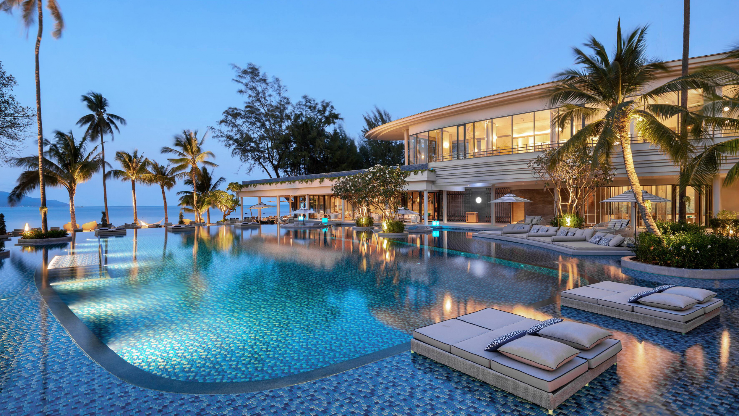 The Level Boat Suite Seaview (91 м.кв.) - Традиционная баржа из тикового дерева преобразована в хорошо оборудованный люкс с роскошными удобствами, новейшими технологиями и привилегиями. Полюбуйтесь завораживающим панорамным видом на сверкающий океан в Сиамском заливе и потрясающий бассейн с большой террасой, на которой установлен большой диван.