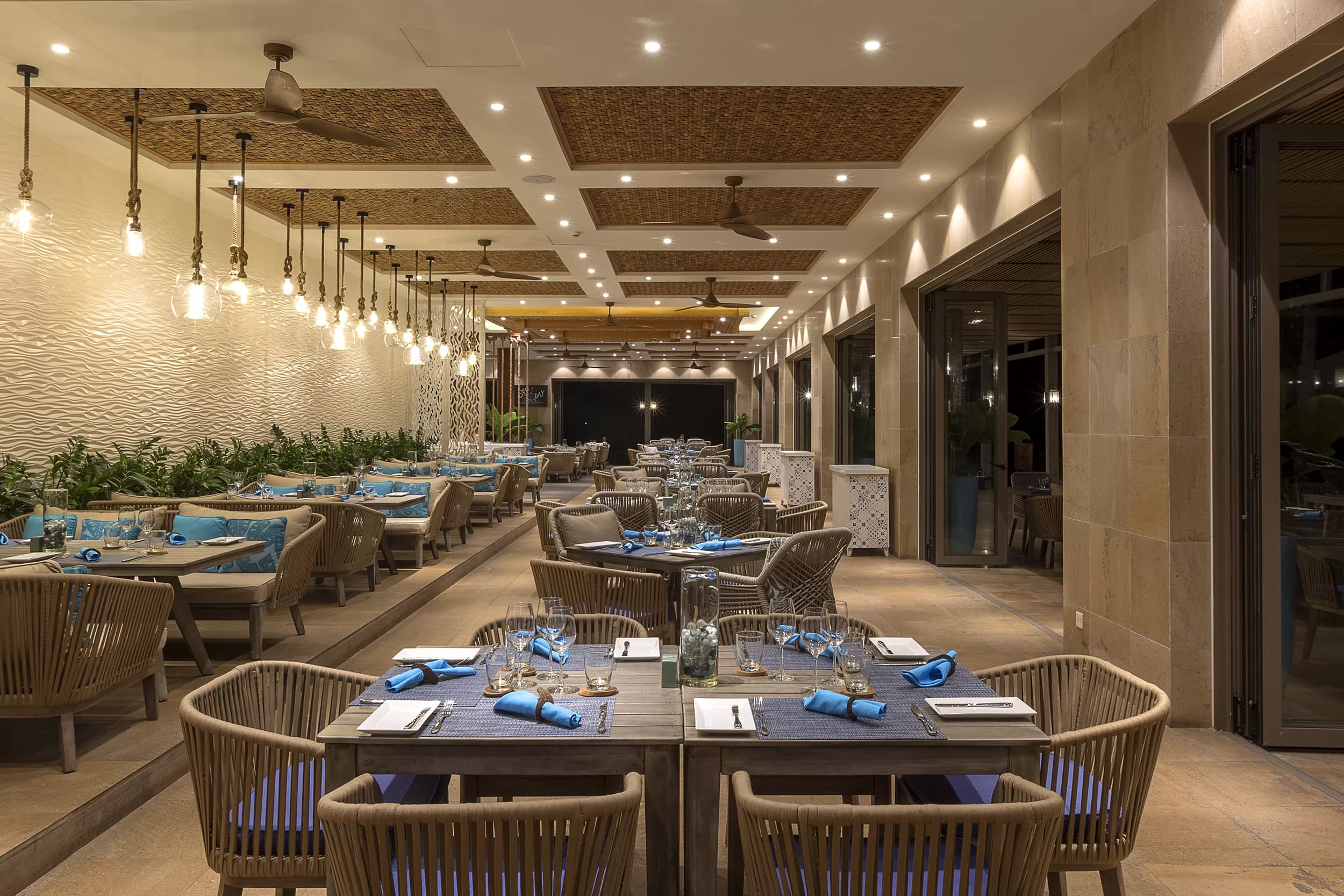 В ресторане и баре Sandals подают морепродукты и блюда интернациональной кухни, а ресторан LaBaia специализируется на итальянских блюдах. В обоих ресторанах ежедневно сервируется завтрак «шведский стол». В баре Mojito's представлен широкий ассортимент коктейлей и закусок.