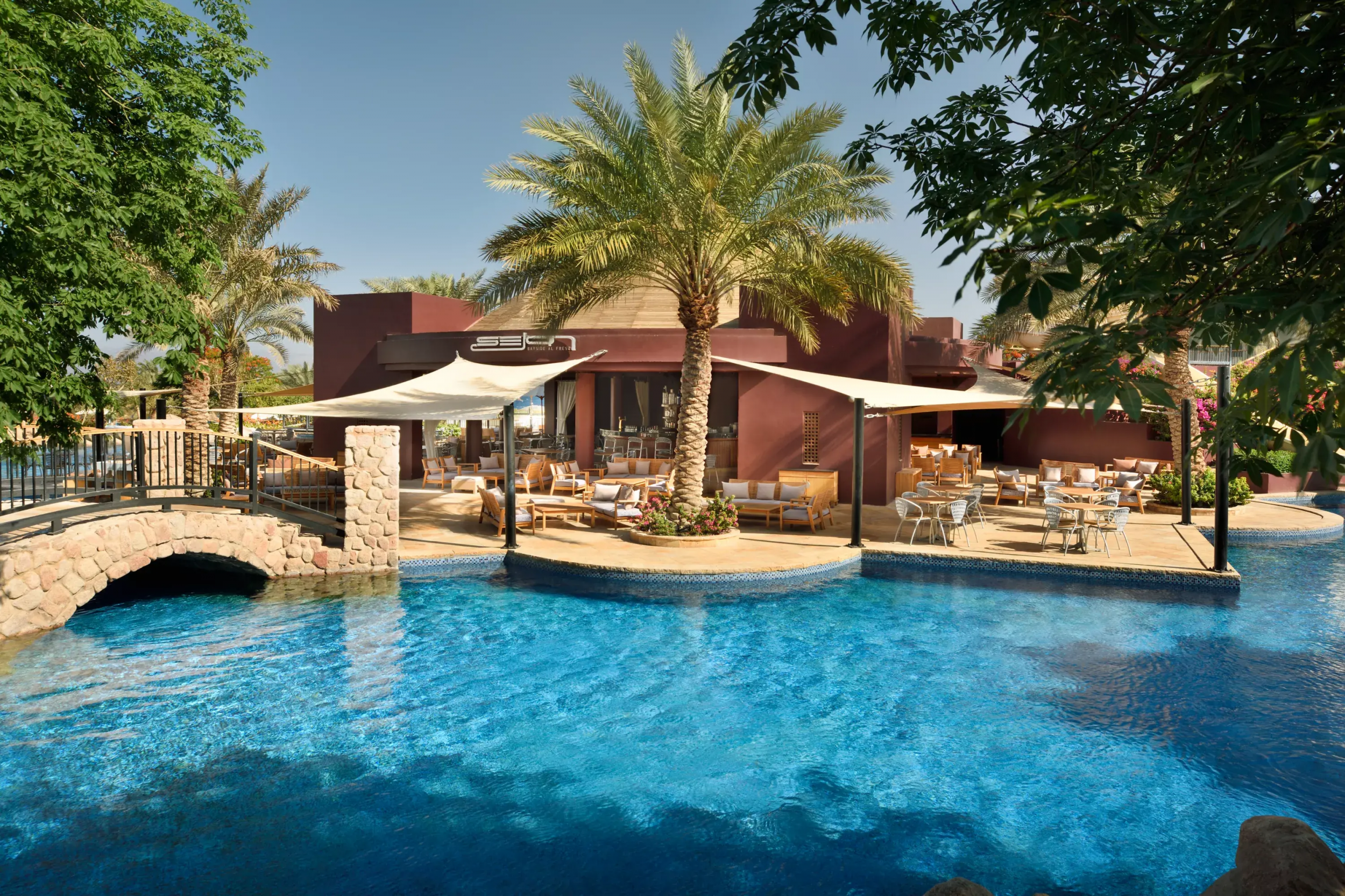 Удовольствие каждую минуту отпуска. Не важно, каким составом вы приедете в этот отель. Не имеет значения, сколько лет вашим детям и любите ли вы спокойный отдых или предпочитаете активные развлечения. В этом отеле каждый найдет свой пятизвездочный отдых. Любите отдыхать активно? Вас ждет дайвинг-центр и водные аттракционы. Предпочитаете релакс? К вашим услугам бассейн в форме лагуны, огромный SPA-центр и оздоровительный клуб. Приехали на море с детьми? Загляните в детский клуб Movenpick Aqaba и выберите малышу блюда на детском столе в ресторане. Кстати, о ресторанах. В отеле Movenpick Resort Tala Bay Aqaba подают блюда итальянской кухни, а перекусить и заказать напитки можно в барах у бассейна и и на пляже.