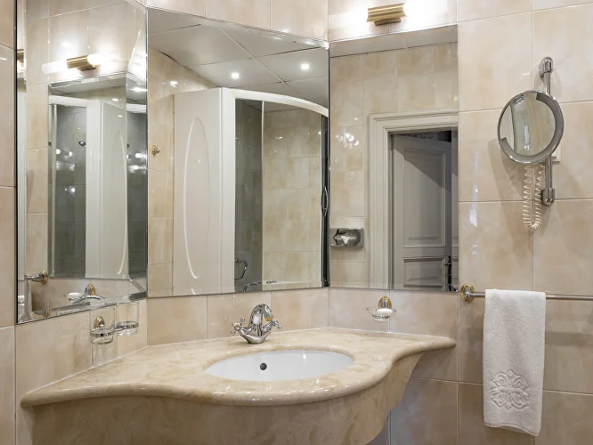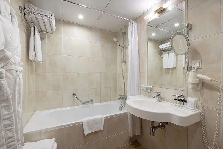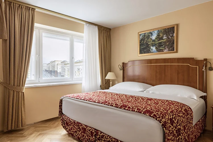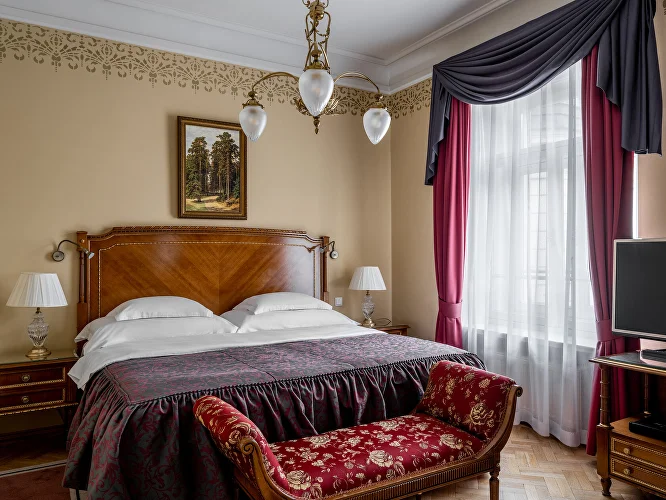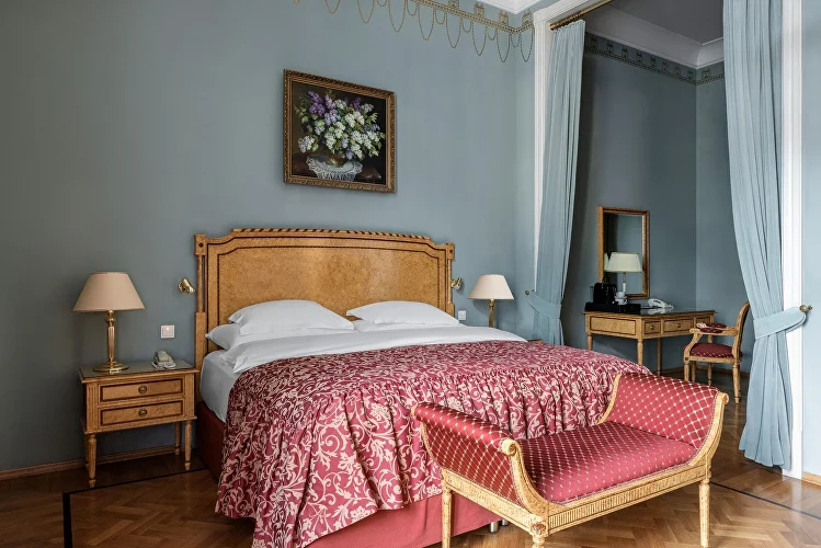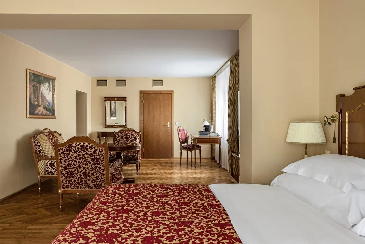 Junior suite (Полулюкс) (35-56 кв. м). Спальня с гостиной зоной (кровать king-size или две отдельные кровати), ванная комната с джакузи. Расположены в исторической части здания. Вид на Тверскую улицу или внутренний двор.