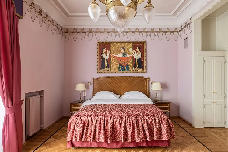 Presidential suite (Президентский люкс) (78-97 кв. м). Гостиная, кабинет, спальня с кроватью king-size, ванная комната. Панорамный вид на Кремль и Тверскую улицу.
