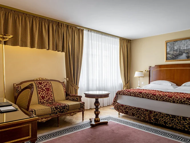 Studio room (Студия) (27-42 кв. м). Спальня с гостиной зоной (кровать king-size или две отдельные кровати), ванная комната с гидромассажной ванной или душевой кабиной. Расположены в современной части здания. Вид на внутренний двор или город.