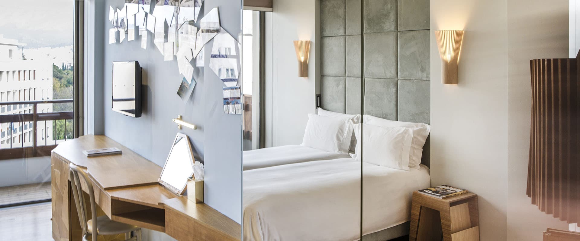 Спроектированный удостоенными наград бразильскими дизайнерами братьями Кампана отель New для некурящих располагает 79 номерами и является членом ассоциации «Дизайнерские отели мира». В прошлом отель New назывался Olympic Palace. Сегодня этот отель с потрясающим современным дизайном сохраняет многие оригинальные черты старого здания, включая черную мраморную лестницу 1940-х годов. Отель New находится в нескольких минутах ходьбы от главных достопримечательностей города: римских руин в районе Плака, Акрополя и его нового музея, стильных кафе и бутиков в районе Колонаки, а также делового района. На территории отеля New действует бесплатный Wi-Fi и работают ресторан средиземноморской кухни и фитнес-центр.