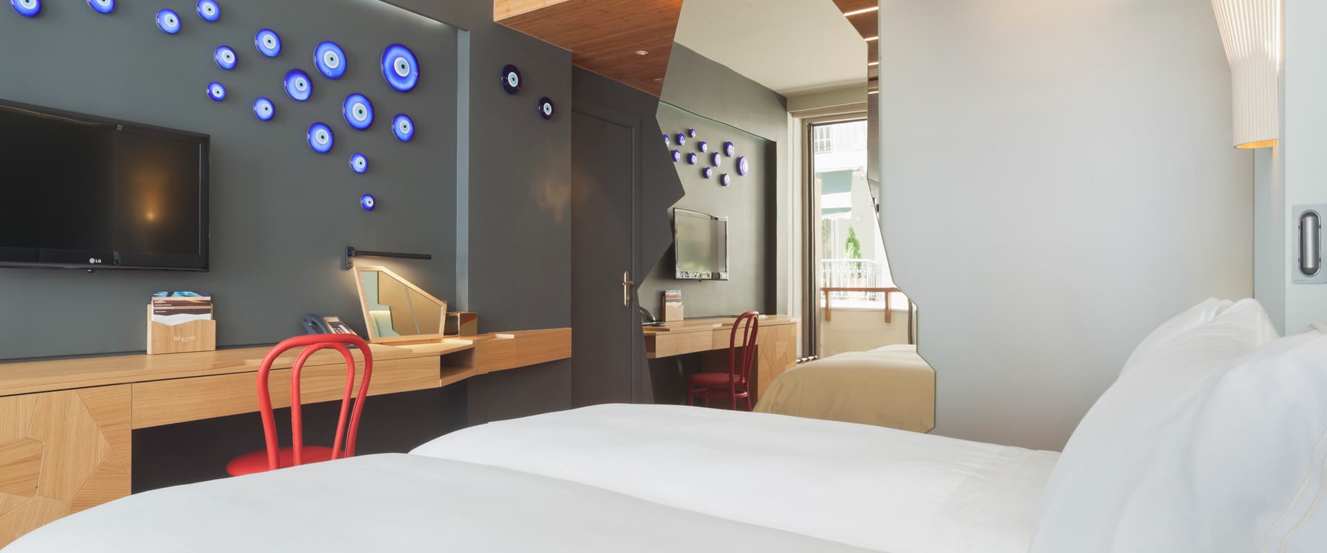 Номера отеля отличают французские окна, бамбуковые полы и столы. В роскошных ванных комнатам установлены массивные медные раковины. Все номера оснащены ЖК-телевизорами.