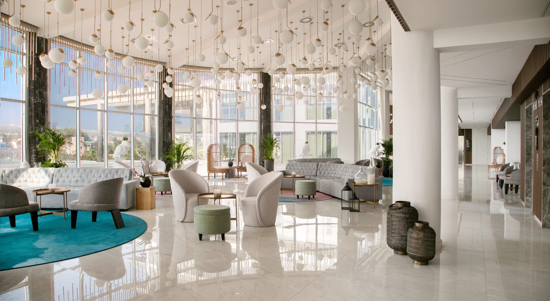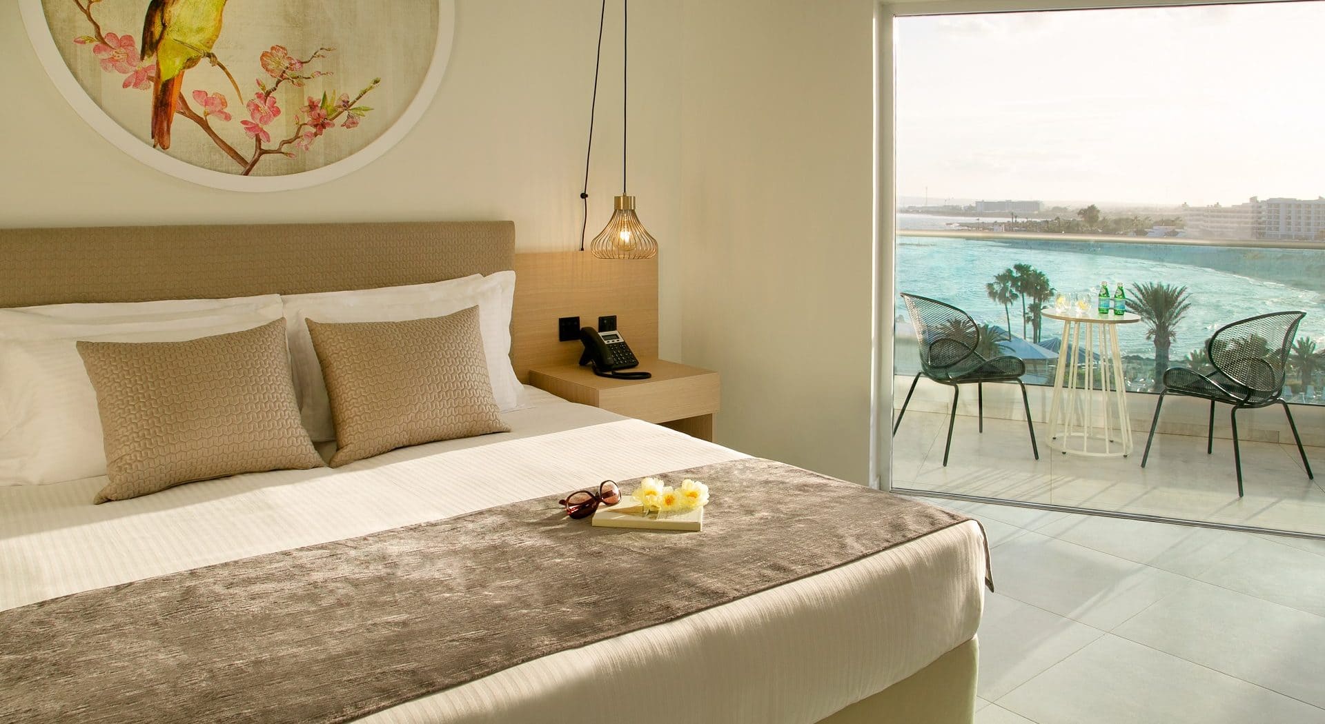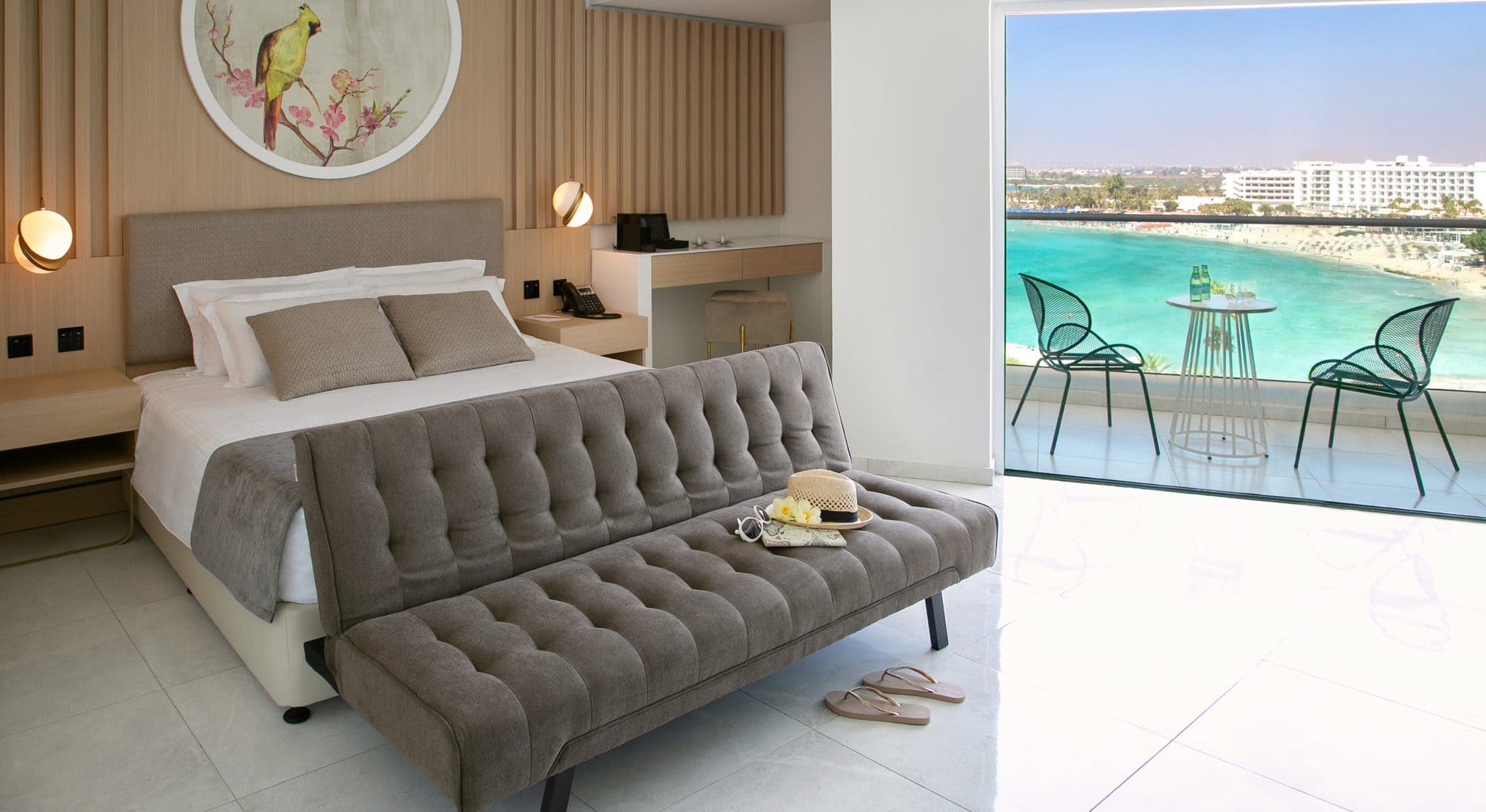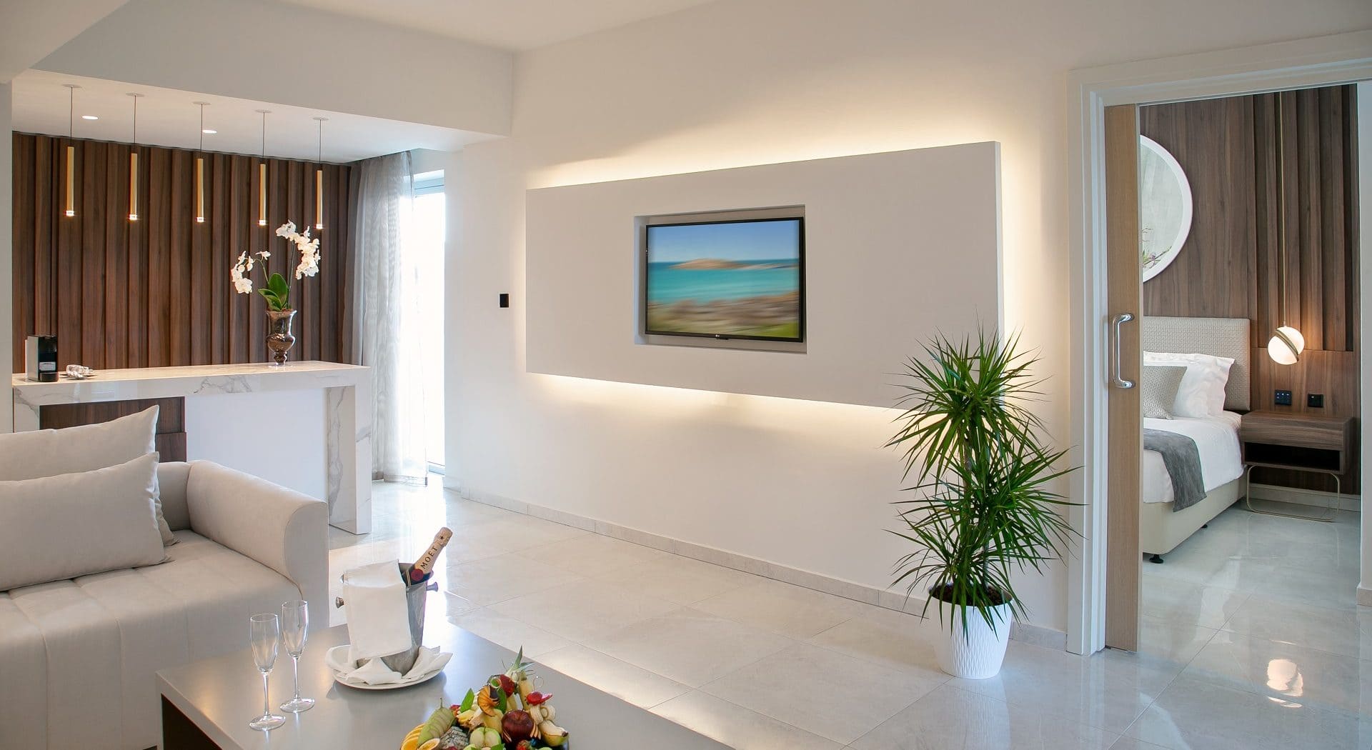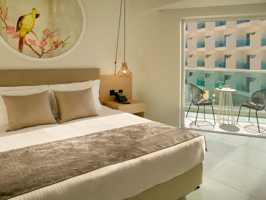 Номера и люксы курортного отеля NissiBlu Beach элегантно меблированы.