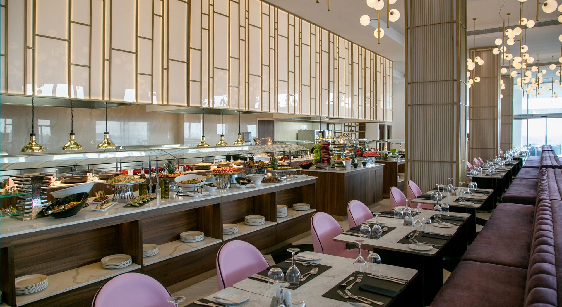 На ужин гости могут отведать блюда американской, итальянской и интернациональной кухни в стильной обстановке. В лобби и у бассейна работают 3 бара, в которых можно заказать экзотические коктейли, мороженое или закуски.
