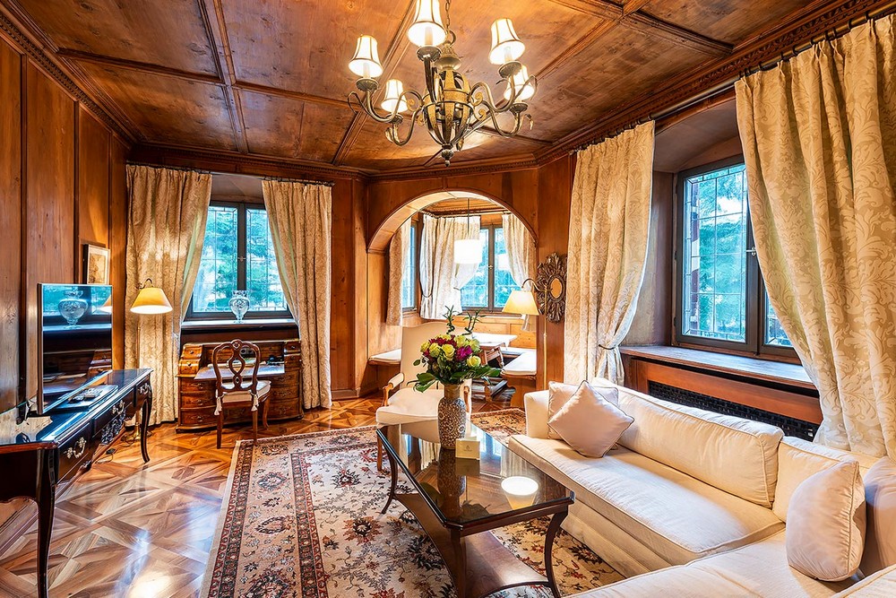 Castle comfort suite (55 кв. м): гостиная, спальня, ванная комната с ванной и душевой кабиной. В некоторых номерах – ванна в спальне. Вид на город и горы. Расположены в небольшом замке.