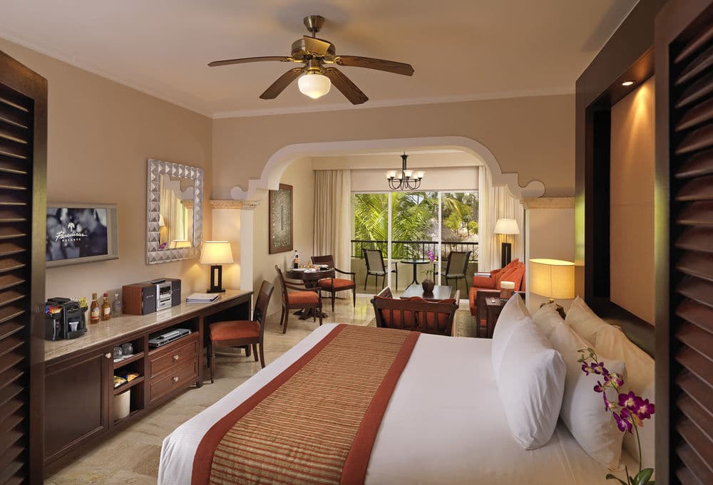 Яркое солнце, белоснежные пляжи, сапфировая гладь океана – это Доминикана! Главный совет всем отъезжающим на остров: остановите свой выбор на великолепном отеле Paradisus Palma Real Resort. Почему? Во-первых, он расположен в живописной части острова на самом берегу моря. Во-вторых, отель обслуживает своих гостей по системе All Inclusive, а это очень приятно. И, наконец, это просто очень красивый отель, что на отдыхе, согласитесь, немаловажно. В отеле – просторные номера категории suite. Изысканный декор, который дополняется всем необходимым для комфортабельного отдыха.