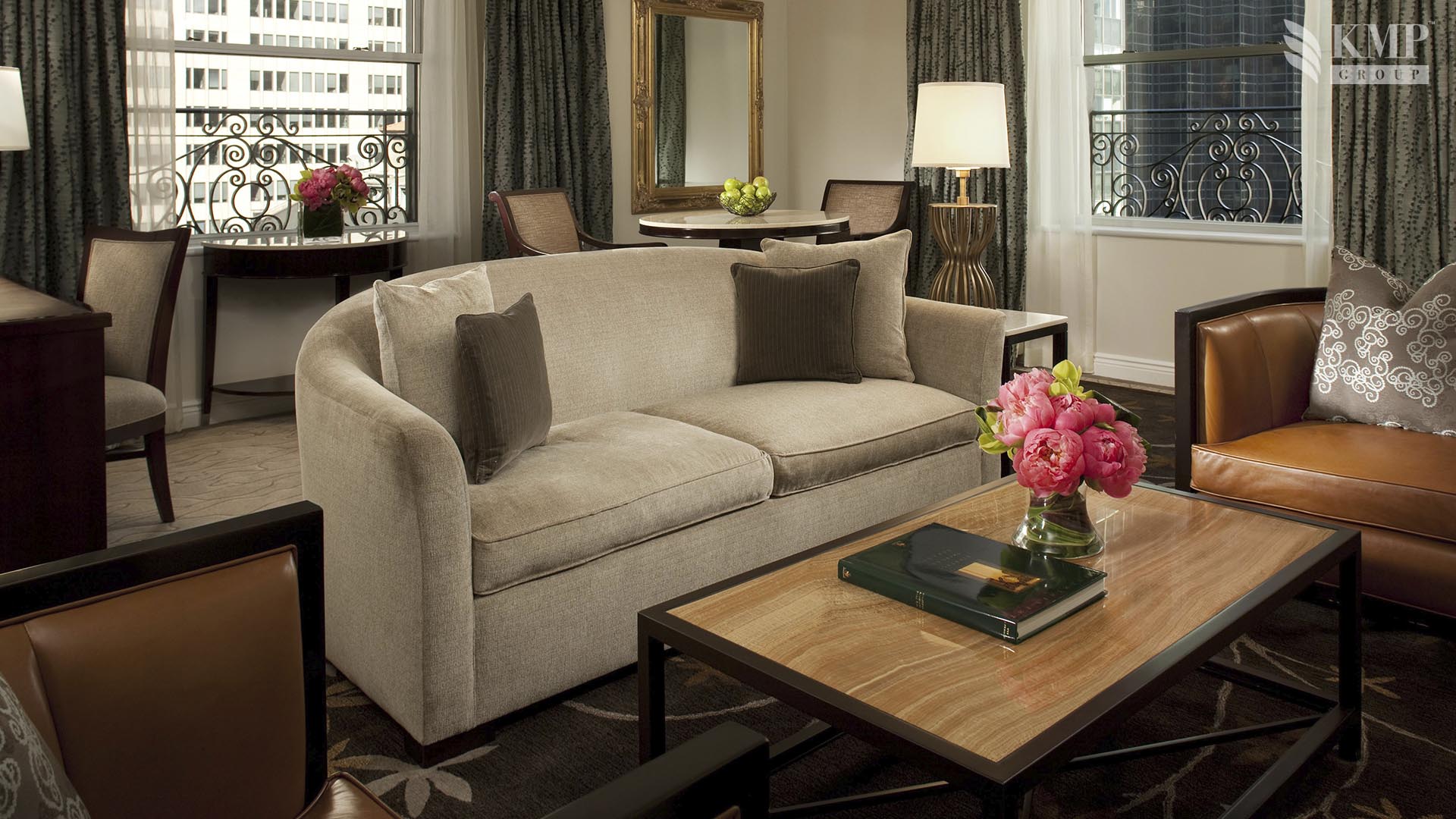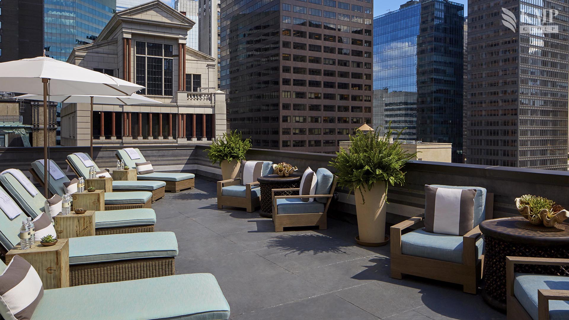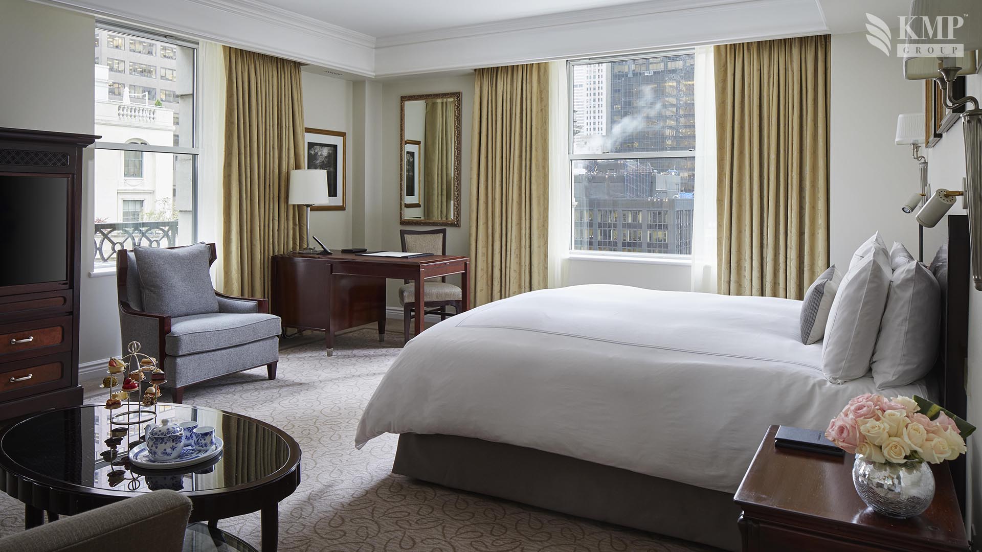 Grand suite (151 кв. м): холл, гостиная, столовая (стол на 8 персон), комната для прислуги, спальня с двуспальной кроватью, гардеробная, ванная комната с ванной и отдельной душевой кабиной, гостевая ванная комната. Дополнительно: принтер, возможность подключения iPod, 2 плазменные панели, декоративный камин. Расположены на 20 этаже. Вид на Пятую авеню и на 55 улицу.