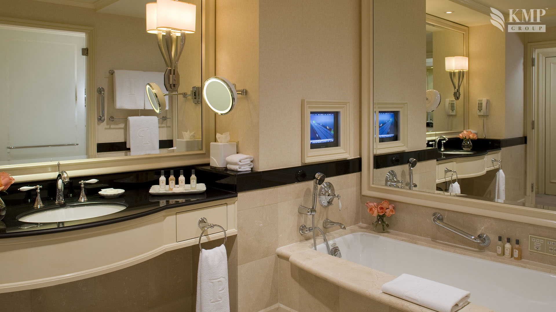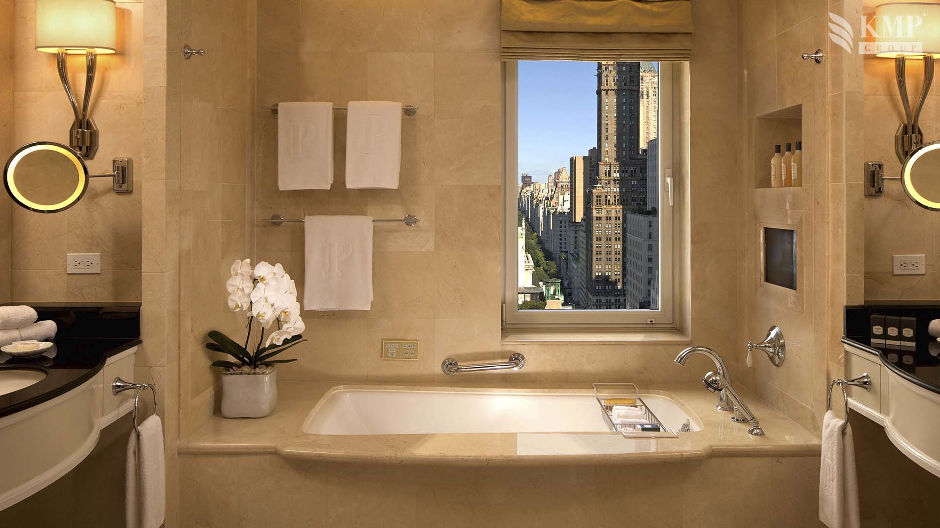 Grand deluxe room (45 кв. м): прихожая, спальня с двуспальной кроватью, ванная комната с ванной и отдельной душевой кабиной. Дополнительно: принтер, возможность подключения iPod. Расположены с 4 по 20 этаж. Вид на Пятую авеню или на 55 улицу.