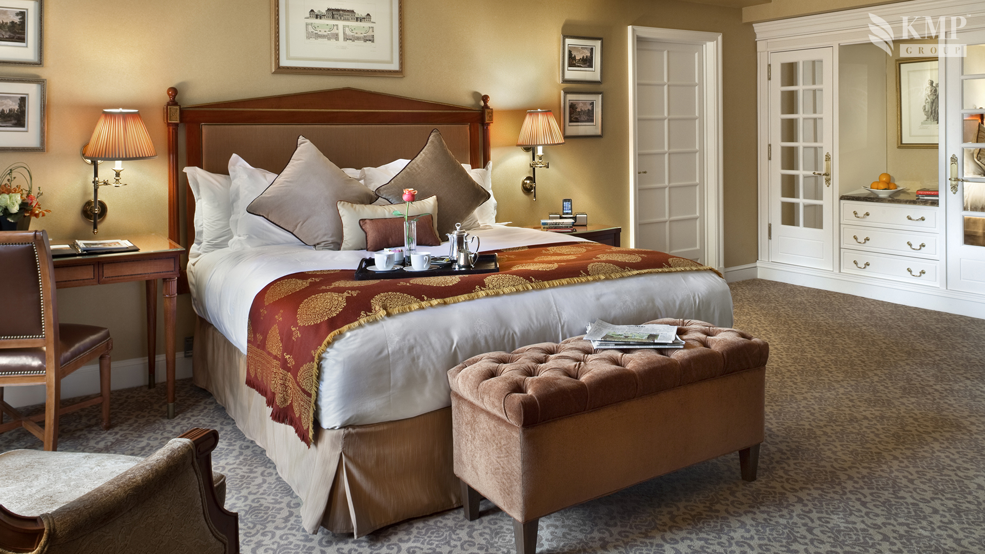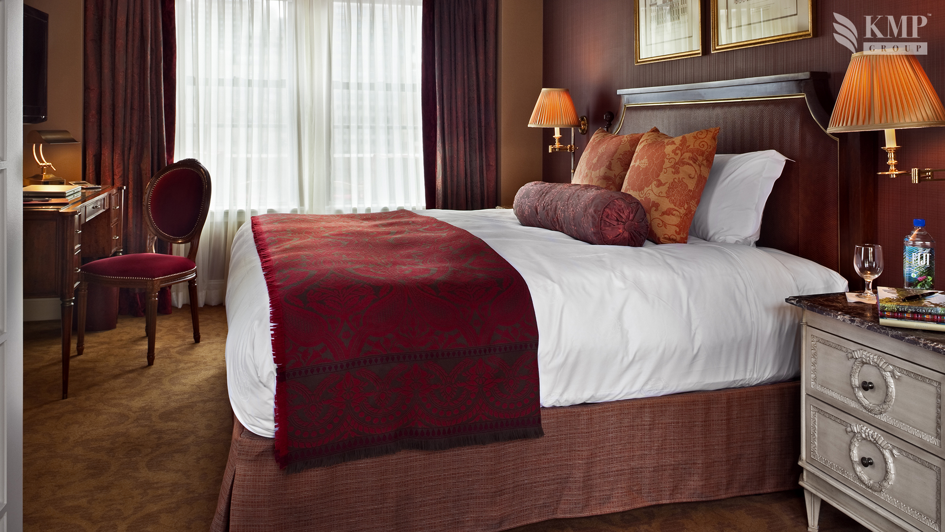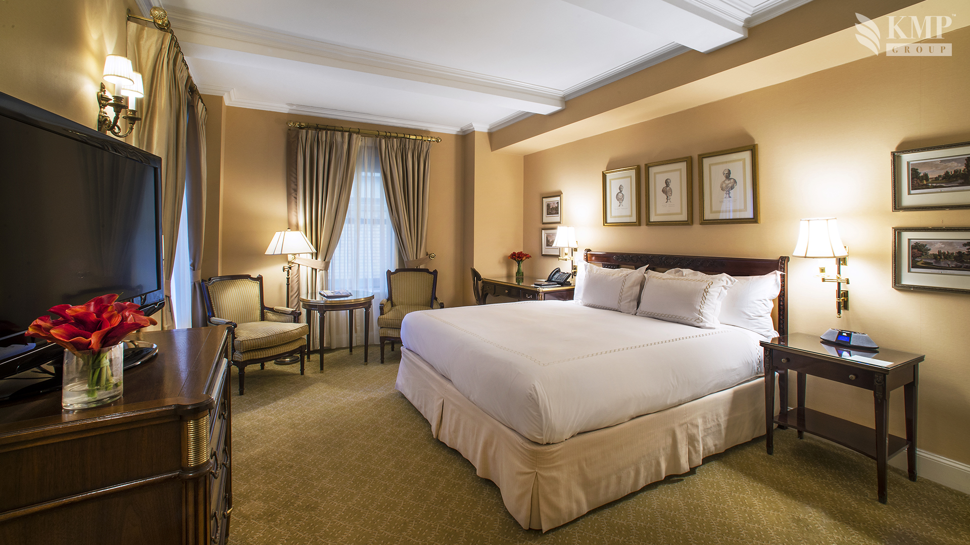 Traditional room (30 кв. м): спальня с кроватью king-size, ванная комната. Расположены с 3 по 6 этаж. Возможно объединение номеров. Вид на внутренний дворик.