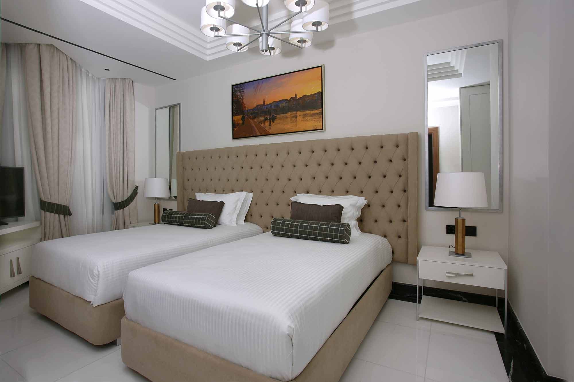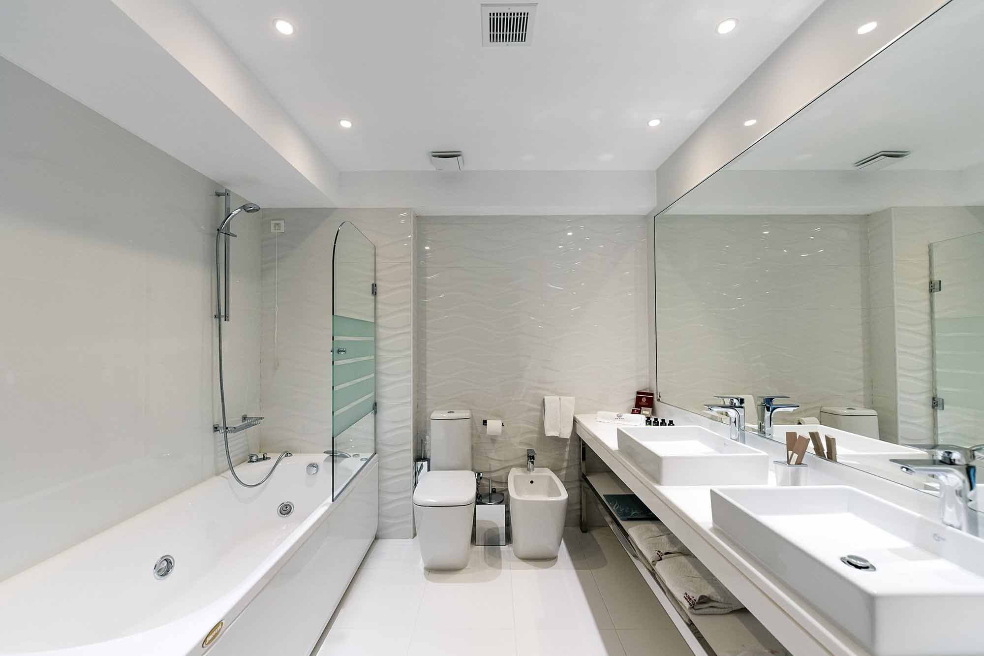Кондиционер/отопление, спутниковое телевидение, DVD-плеер, Wi-Fi доступ в Интернет, телефон, сейф, мини-бар (по запросу), кофемашина Nespresso, чайник, фен, весы, халаты, тапочки.