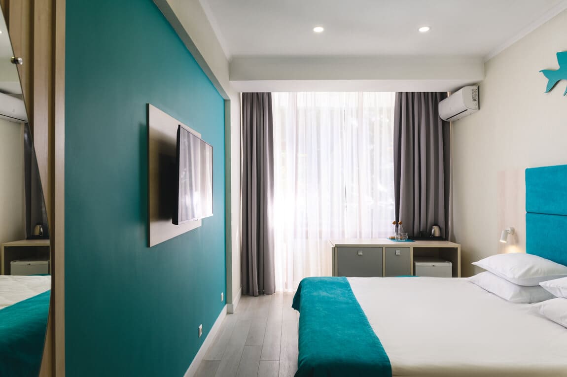 Для размещения гостей предлагается два корпуса по 5 этажей каждый – основной и апарт-отель, оборудованные лифтами. Комплекс располагает 162 номерами различных категорий от «Стандартов» до «Суперлюксов», оборудованных всем необходимым для комфортного проживания. Общая вместимость комплекса - 350 мест. В каждом номере имеется современная мебель, телевизор, холодильник, сейф, телефон, радио, кондиционер. Проводится ежедневная уборка, смена полотенец, белье обновляется каждые 3 дня. Горячее и холодное водоснабжение – круглосуточно.