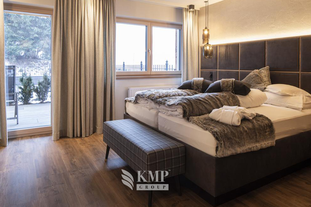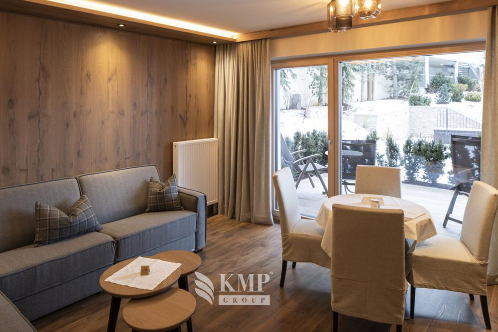 Suite Paznaun: 70 м2, для 4-6 чел.; отдельная гостиная и 2 спальни, 2 ванные комнаты (с ванной, душем и инфракрасной кабиной, небольшой ванная с душем и туалетом), DVD, кофеварка.
