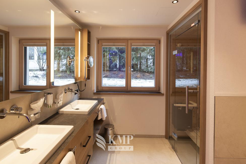 Suite Alpine: 65 м2, для 2-4 чел.; первый этаж, спальня с гардеробной, ванная комната с ванной и душем, двойная раковина, отдельный туалет, сауна, терраса, DVD, кофеварка.