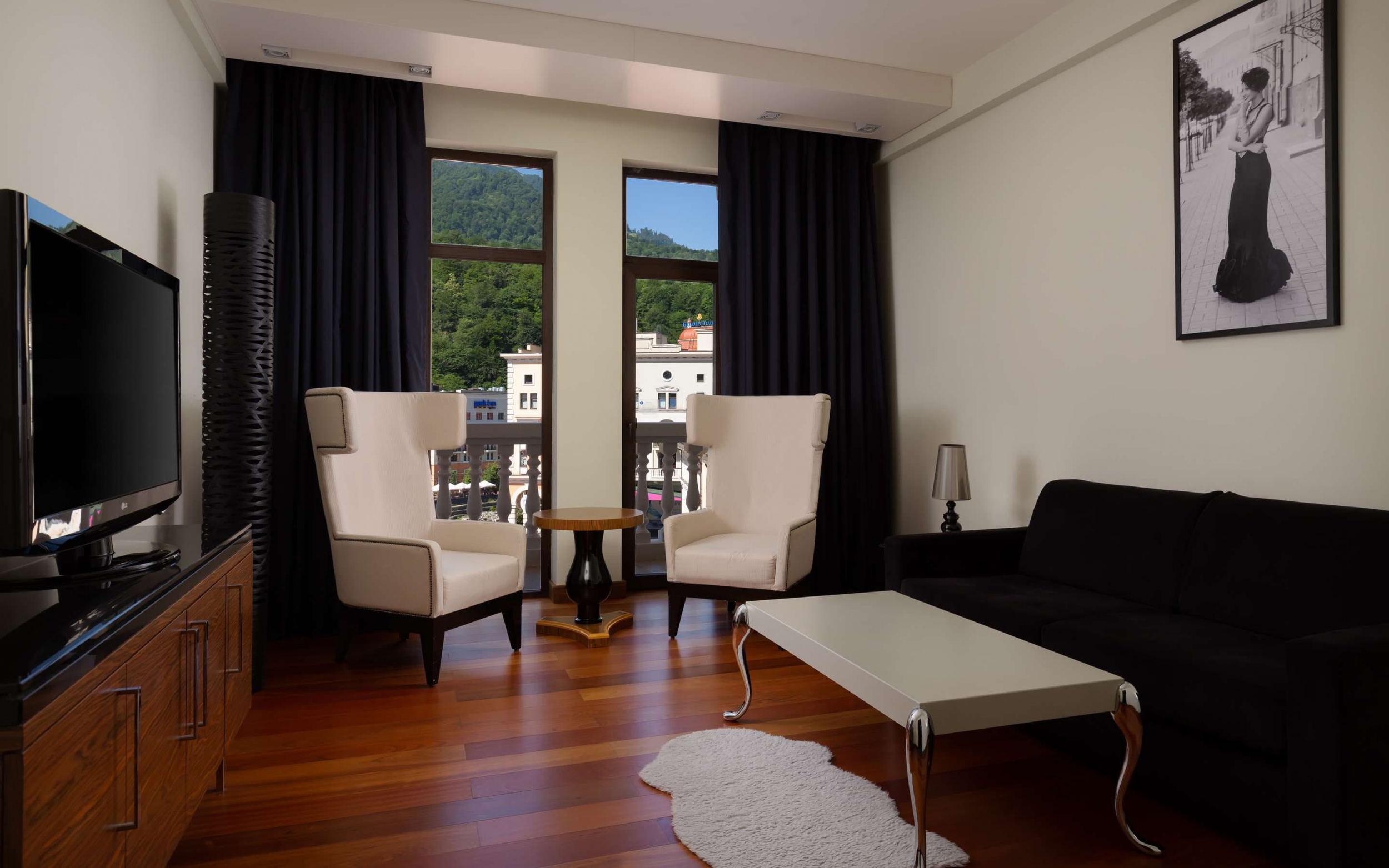 Номера отеля «Radisson Роза Хутор» оформлены в классическом стиле. В числе удобств — телевизор с плоским экраном и спутниковыми каналами, кондиционер и мини-бар. В некоторых номерах в распоряжении гостей кофемашина, электрический чайник и кухонная утварь. В собственной ванной комнате предоставляются халаты, тапочки, фен и бесплатные туалетно-косметические принадлежности. Разнообразный завтрак «шведский стол» сервируют каждое утро. В ресторане Seasons и гриль-баре Black подают блюда европейской и русской кухни. В лобби-баре можно заказать коктейли.К услугам гостей оздоровительный спа-центр, рестораны и бар. На территории работает бесплатный Wi-Fi. В оздоровительном спа-центре «Пирамида» можно посетить сауну, турецкий хаммам и ледяной фонтан, а также заказать оздоровительные и косметические процедуры, сеанс маникюра, педикюра и массажа. К услугам гостей терраса на крыше с гидромассажной ванной и бар. Круглосуточный фитнес-центр находится рядом со спа-центром. В отеле в распоряжении гостей 12 залов для проведения совещаний и детский клуб. Зимой гости могут взять напрокат лыжное снаряжение, а летом — велосипеды.