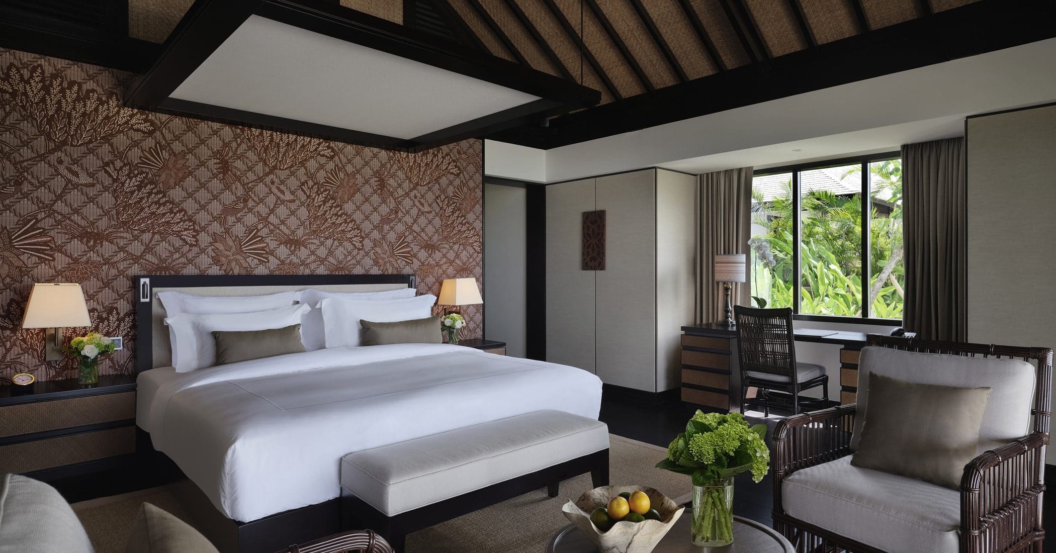 32 приватные виллы с бассейнами воплощают утонченный шарм для ценителей путешествий, ищущих элегантности, уединения и культурных открытий. В каждой из наших вилл с бассейном, обилие солнечного света струится через двери патио, чтобы отразиться от роскошных паркетных полов. За кроватью размера king-size висят картины из мягкого батика, созданного местными мастерами в то время, как ротанговая мебель дает с комфортом насладиться потрясающими видами на частный сад и океан за ним. Виллы оборудованы открытым и закрытым душем, в дополнение к ванным, в каждой есть коврики для йоги и пляжные комплекты. К виллам прикреплены батлеры, их сервис доступен круглосуточно.