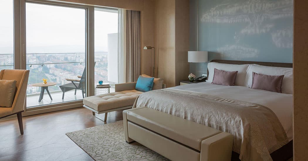 Premier room (63-92 кв. м): терраса, спальня с кроватью king-size, гардеробная (в большинстве номеров), ванная комната с ванной и душем. Вид на город или частичный вид на Босфор.